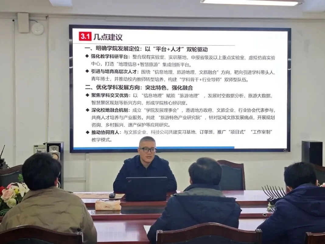 1月25日下午,旅游学院围绕王梁教授讲座内容,结合学院自身实际,召开了“学院专业发展专题研讨会”。鲁春晓鼓励与会老师畅所欲言,基于学科现状直面问题与挑战,共同绘制切实可行的发展蓝图。现场思想碰撞不断,既有对宏观发展方向的辩证思考,也有对具体课程改革、项目合作、学生实践能力培养等微观操作层面的务实建议。