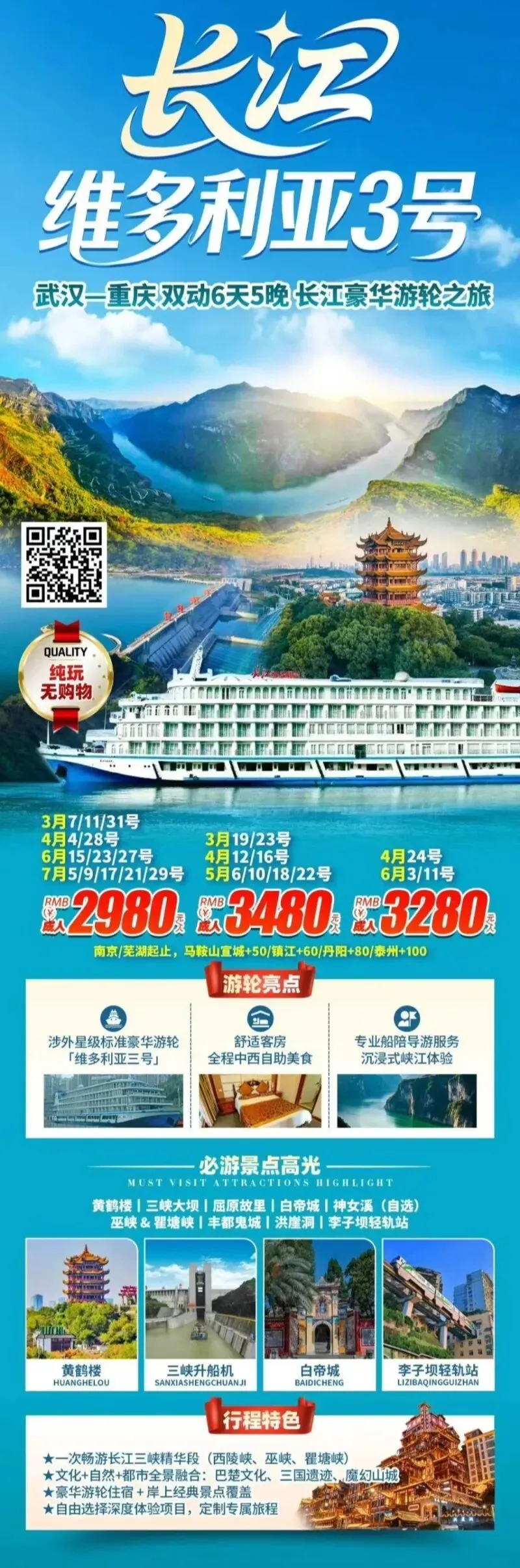 三月春风里,一艘名为维多利亚3号的船,载着我对美好旅行的所有幻想,驶向三峡的怀抱。2980,不只是数字,是开启梦幻之旅的钥匙。