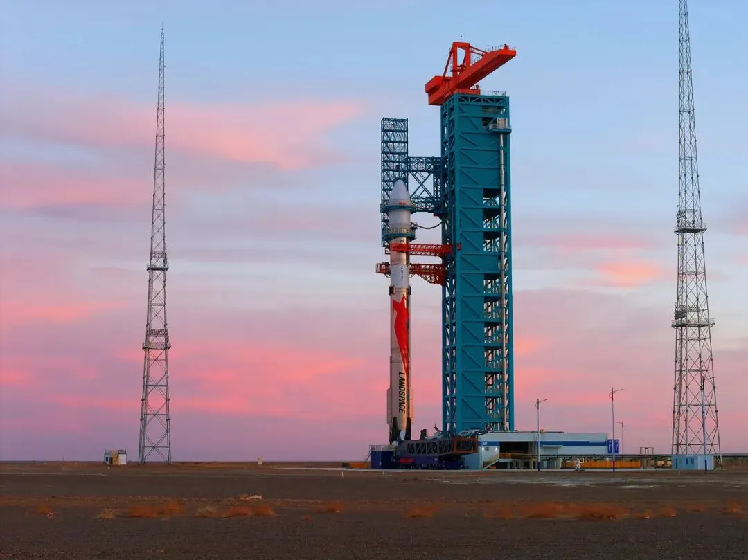 伫立在戈壁滩上的朱雀三号火箭 图源:蓝箭航天