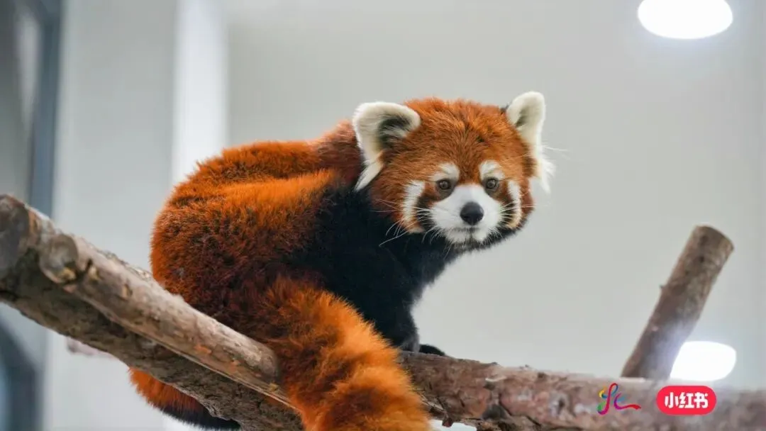 可爱的小熊猫亲密互动,