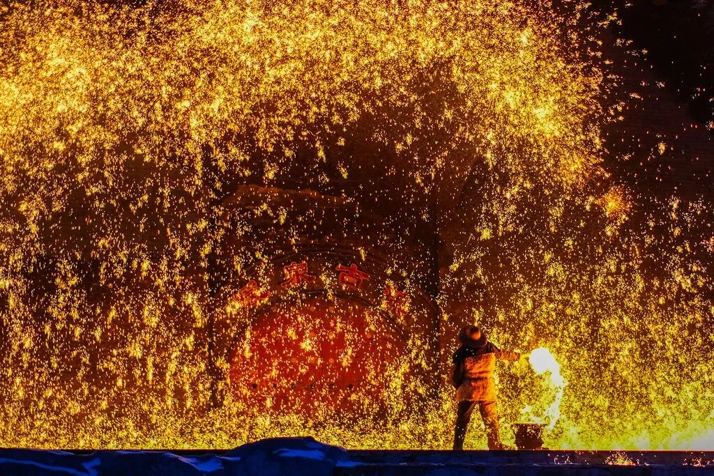 暖泉古镇打树花铁花飞溅