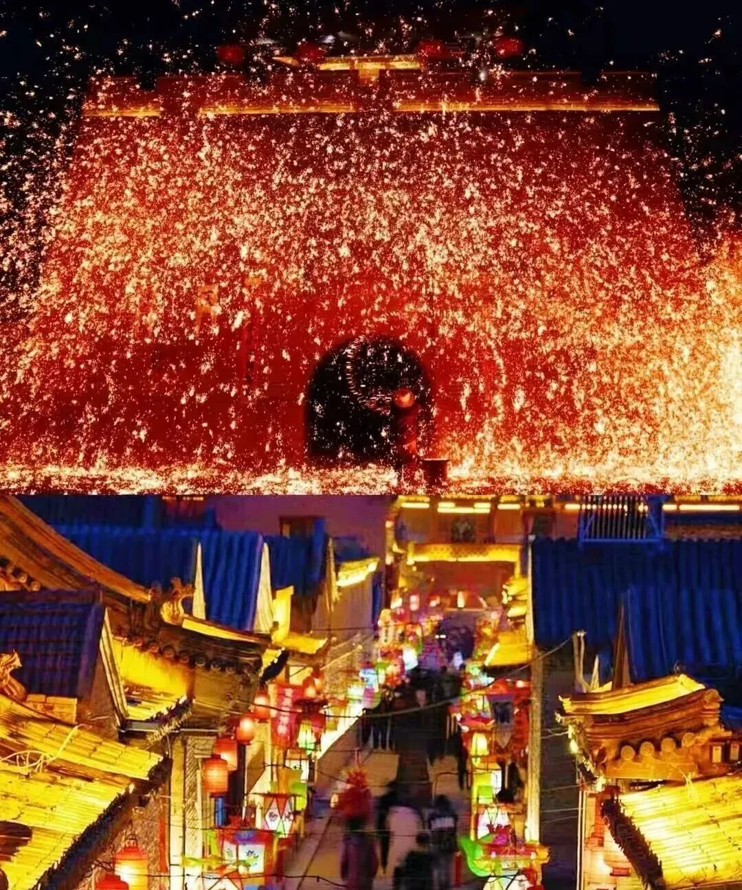 必看“打树花”:这是蔚县年味的重头戏!夜幕下, molten铁水被用力泼洒到城墙上,瞬间绽开万朵金花,比烟花更璀璨、更震撼!记得提前抱住宝宝,一起“哇”出声来!