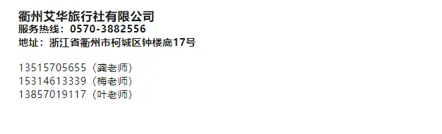 杭州/宁波/台州/衢州/丽水均可出港