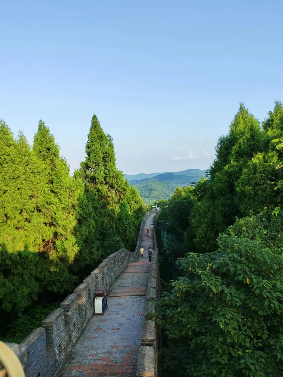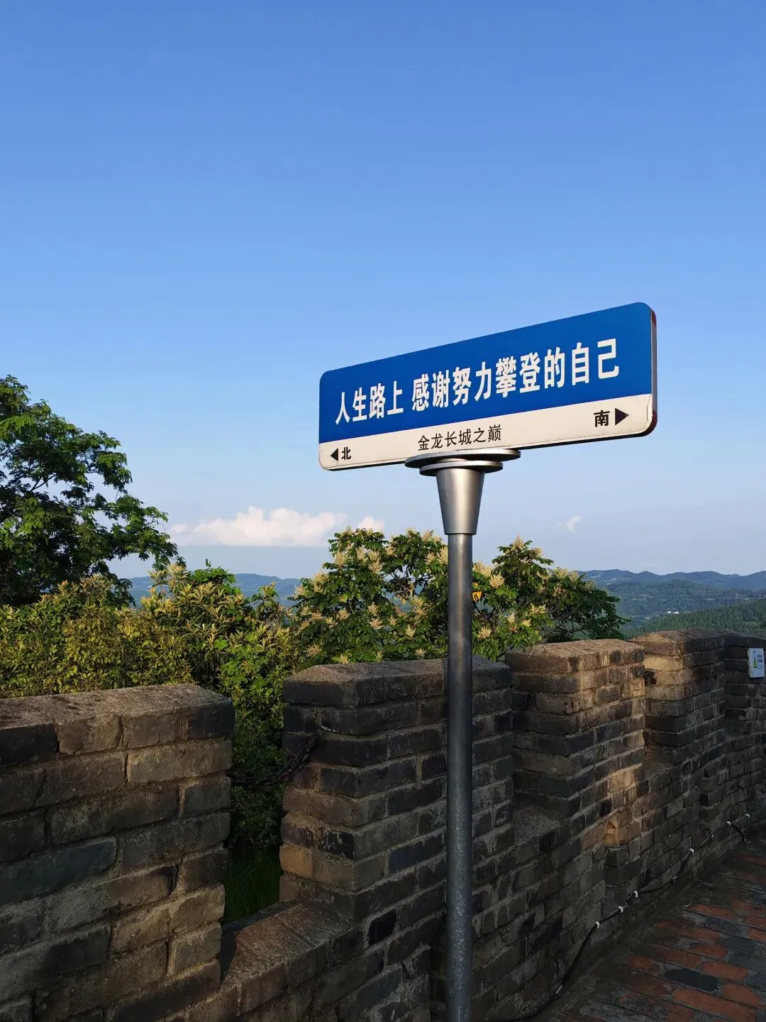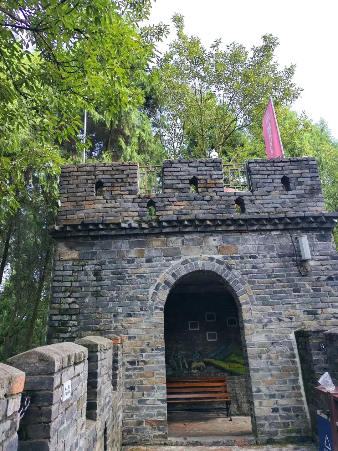 刚踏上金龙长城妈妈就发出了疑问,这里为什么有长城?其实我也有此疑问。 原来,金龙长城是一个2002年建成的现代仿古景观建筑,以北京八达岭为蓝本,又融入川西建筑特色,主要目的是为了旅游观光和休闲健身,是龙泉“一寺一湖一长城”旅游开发的一部分。 历史上龙泉一带都没有长城的存在,只有一些零星的军事设施,比如瞭望台、山寨、堡寨,用于剿匪、防盗、观察周边动向等地方防务。