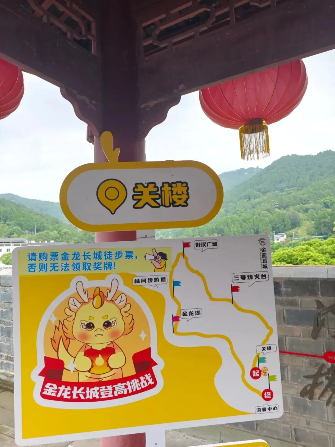 2. 小汤圆5岁,我妈妈67岁,上山75分钟,下山28分钟,加上在山顶休息的时间,全程大概用了两小时。 3. 下山可以坐丛林滑道,类似于过山车。但下山几乎没有难度,完全可以选择自行下山。 4. 金龙长城入口附近有人拦住车子、游客,说坐他们的车子可以免票进入,20元一人,直接把游客拉到山顶。但是金龙长城本身就是现代仿制建筑,如果直接到达山顶,连健身的目的都失去了,游玩的乐趣也失去了一大半。