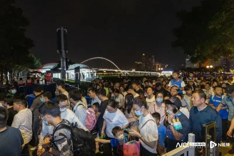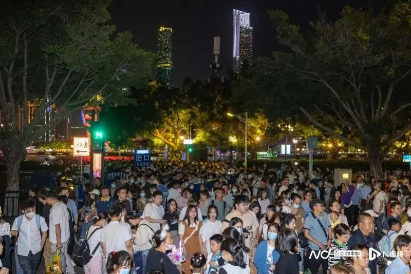 4月30日晚,广州塔下的游客 “五一”首日,广州市区下了一场暴雨。阴雨连绵,但仍有千万游客步履不停,其中在广州动物园熊猫馆门外一大早便排起长长的队伍。虽然明星熊猫“星一、雅一”并未在游客前亮相,但广州动物园仍在同程旅行的数据统计中荣列“五一”首日热门景区排行榜第六名。 除动物园以外,北京路步行街、石室圣心教堂门前的广场、陈家祠广场以及南越王墓博物馆门前等多个景区都出现了游客爆满的情况。适逢第133届广交会休展期,老牌商业街北京路上出现了不少外来客商的身影。石室圣心教堂门前的广场成为年轻游客最爱打卡的地方,巧合的是,教堂门前的路名为“劳动路”。陈家祠广场上则早早地打起“蛇饼”。即使是以往相对“低调”的南越王墓博物馆门前也因游客数量过大而排起了长队。 当然,最具人气的景区还是广州塔,假期第二天傍晚七点后,广州大桥便开始聚集着远道而来的游客,欣赏两岸天际线的美景,且随着时间推移游客数量不断增多。由于游客数量过于庞大,入夜后广州塔不得不采取限流措施,形成壮观的队伍。游走在队伍中的人们在任何可以看到广州塔的地方拍摄合影,这样的场面也在社交媒体上频频出现。某种意义上,这种历史性的人山人海本身已经成为一道独特的风景线。 多图直击↓↓