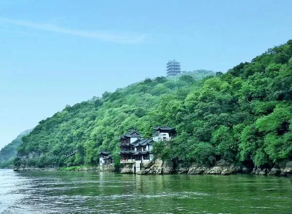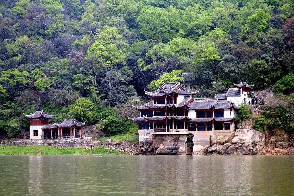 太白楼位于翠螺山南麓,依山临江,楼高18米,三层两进,前楼后阁,左右回廊,飞檐翘角,蔚为壮观。
