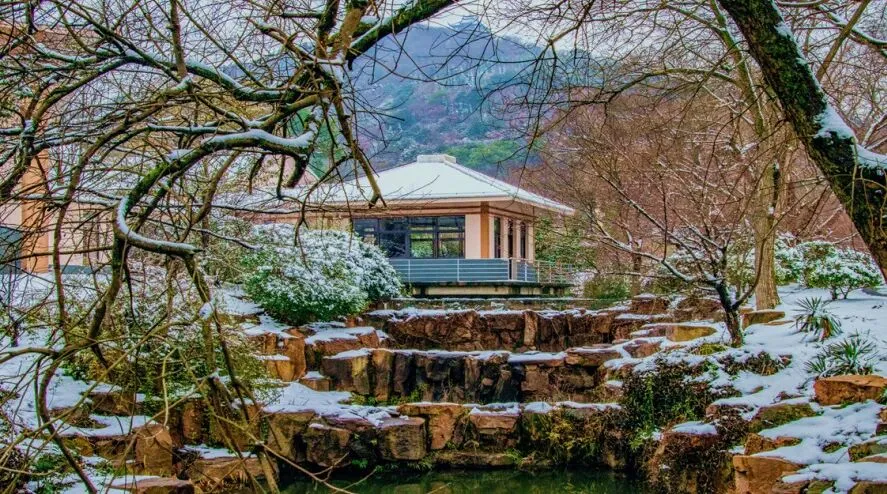 延园占地面积2,000平方米,为院落式布局,山坳竹木浓密,水塘散布其间,古朴大气,简洁淡雅。