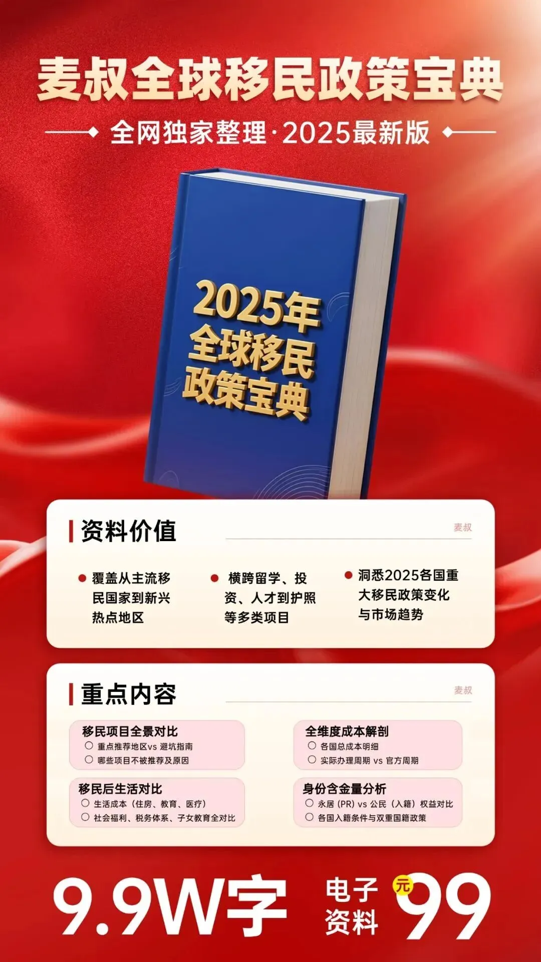 麦叔全球身份规划 美国 | 加拿大 | 欧洲 | 日本 | 香港 | 新西兰 | 澳洲 | 新加坡 添加麦叔微信时,务必备注暗号:身份 麦叔全网独家整理了一份9.9万字 全球最新移民政策电子书 不免费,加麦叔微信支付99元后领取
