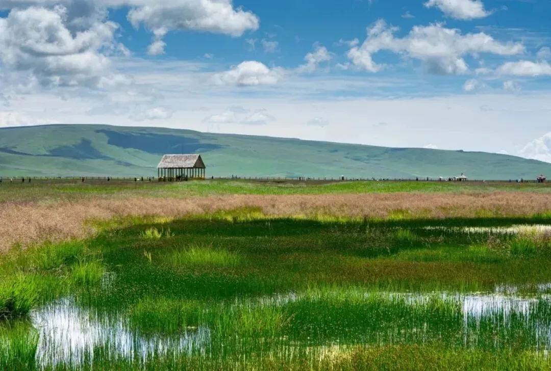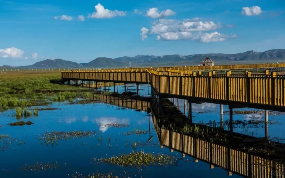 郭莽湿地是黄河最大支流洮河的发源地和水源涵养地,站在观景台上,可以欣赏一望无际的草原湿地风光。
