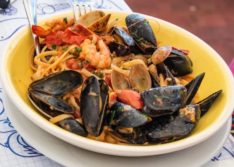 肉类菜肴占据主导地位,烤肉丸、馅饼、炖菜随处可见,山羊肉和羔羊肉尤为常见。沿海地区则深受意大利和希腊影响,新鲜的鱼类、海鲜、沙拉和意面物美价廉。