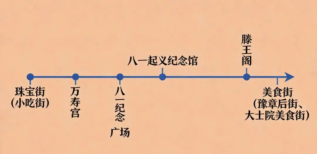 上午7:00重庆出发,9:00抵达南昌,放下行李轻装上阵直奔珠宝街,各种小吃集锦,分工从街头买到街尾,选定在南昌特色水煮集合。