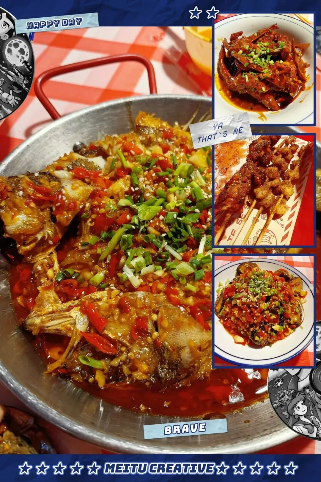 晚上尝试的是本地收藏排名第一的美食店—欧记大排档:欧记王牌鸡脚、招招牌蟹脚、麻辣鸡中翅、甜麻跳跳蛙、饮料青提气泡水、茉莉奶白,景德镇特色冷粉。
