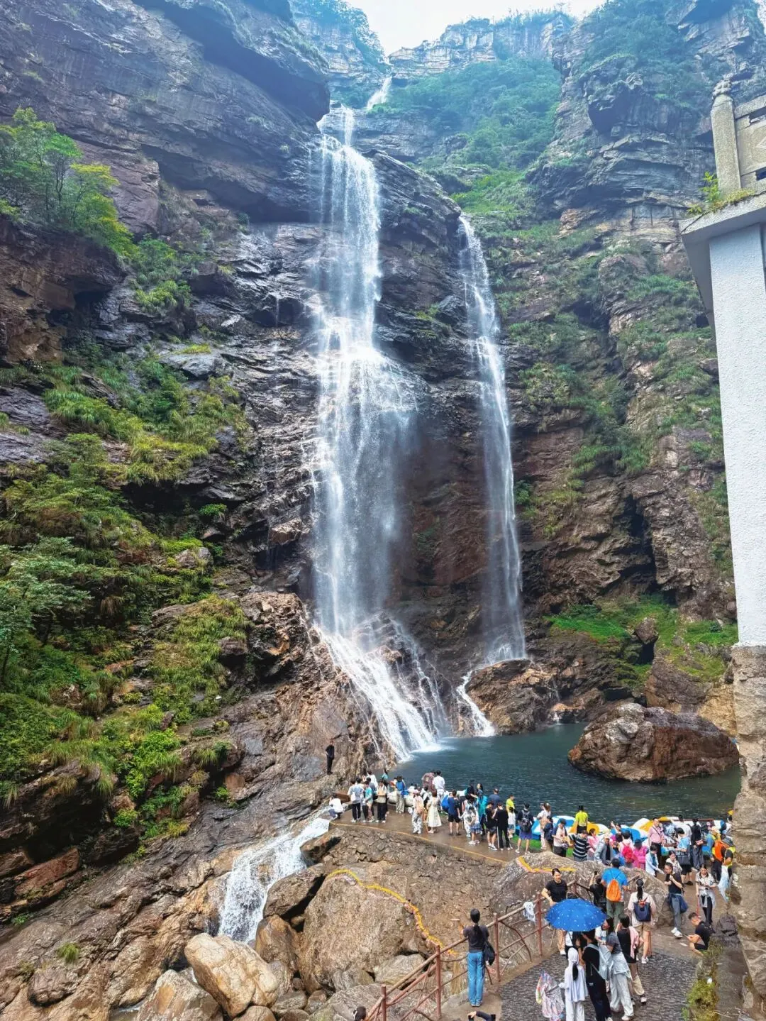 上行至三叠泉景观处需徒步大约1500级阶梯,爬山的过程最后一鼓作气到顶,不然容易懈怠,下山的过程可以边回程边拍照,能省下不少游玩时间。