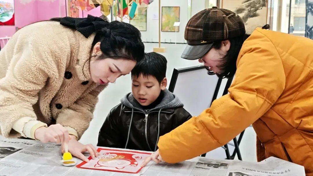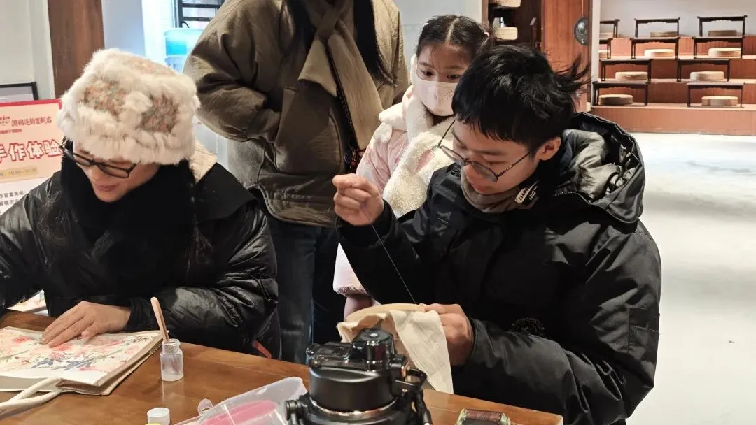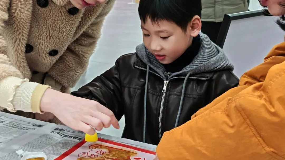 手作体验环节则成为亲子默契的“粘合剂”,每一项都藏着夏布的独特质感;敲拓染,将自然肌理印刻在织物上;扎染创作随心发挥,每一块布料都藏着独一无二的色彩惊喜;福字印刷,亲手拓印年味与福气;夏布绣体验中,一针一线勾勒非遗雅致;还有随机解锁的各类手作,让每一组家庭都能带着专属记忆返程。