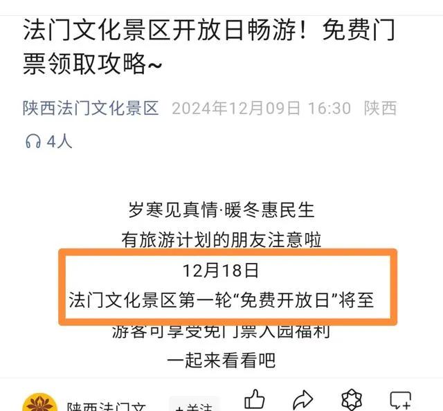 很多人以为景区门票降价或者免费,只是优惠了游客,让大家多省点钱,热闹一下,但法门寺这次5A景区免费日,你要是只看到了“立省90元”这一层,真是太浅了,因为如果你真在陕西的冬天,混在预约大军里抢下一张票,到了现场,站在法门寺的大殿和地宫前,你才会发现,这种“免费”背后,其实是一次对**“公共价值”的重新定义,是让你直面什么叫做“文化自信”**和“全民共享”,而不是景区搞活动那点小心思。