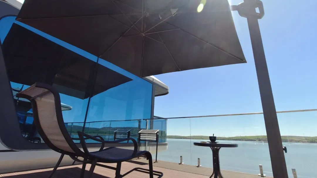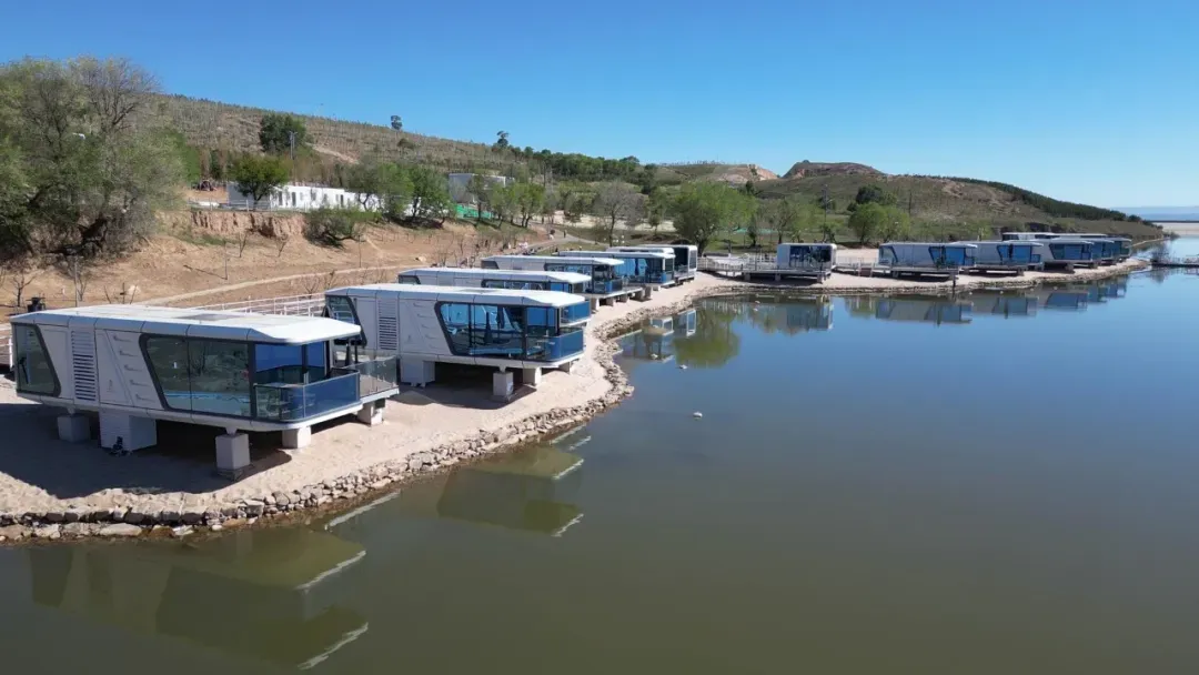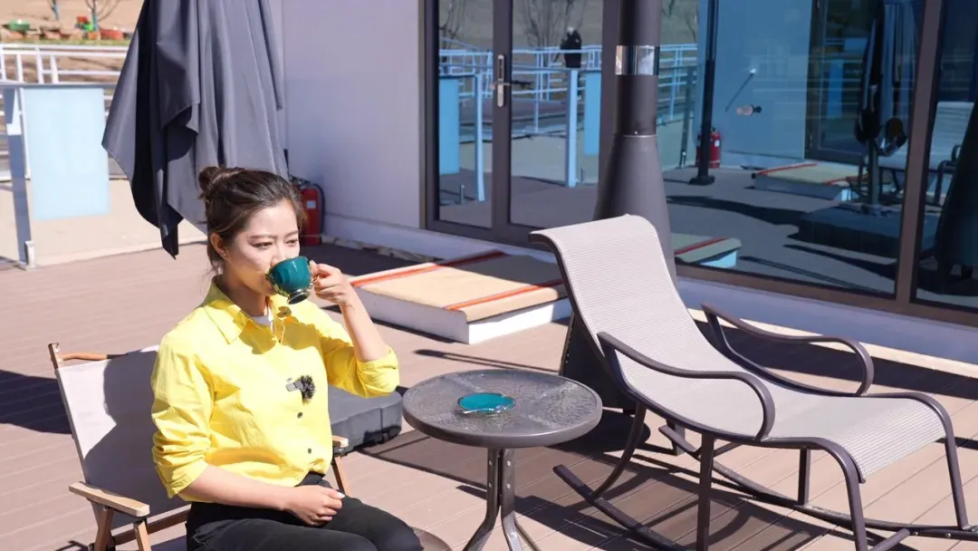在这里的每一个早晨都是被鸟儿叫醒的,窗外是只此青绿,美丽画卷,游客可以在特色民宿太空舱里来一场森林康养。 游客 吕昭宇:我昨天和朋友从河北张家口过来的。早上起来可以吹吹海湖边的风,这边还有小沙滩,感觉特别惬意。