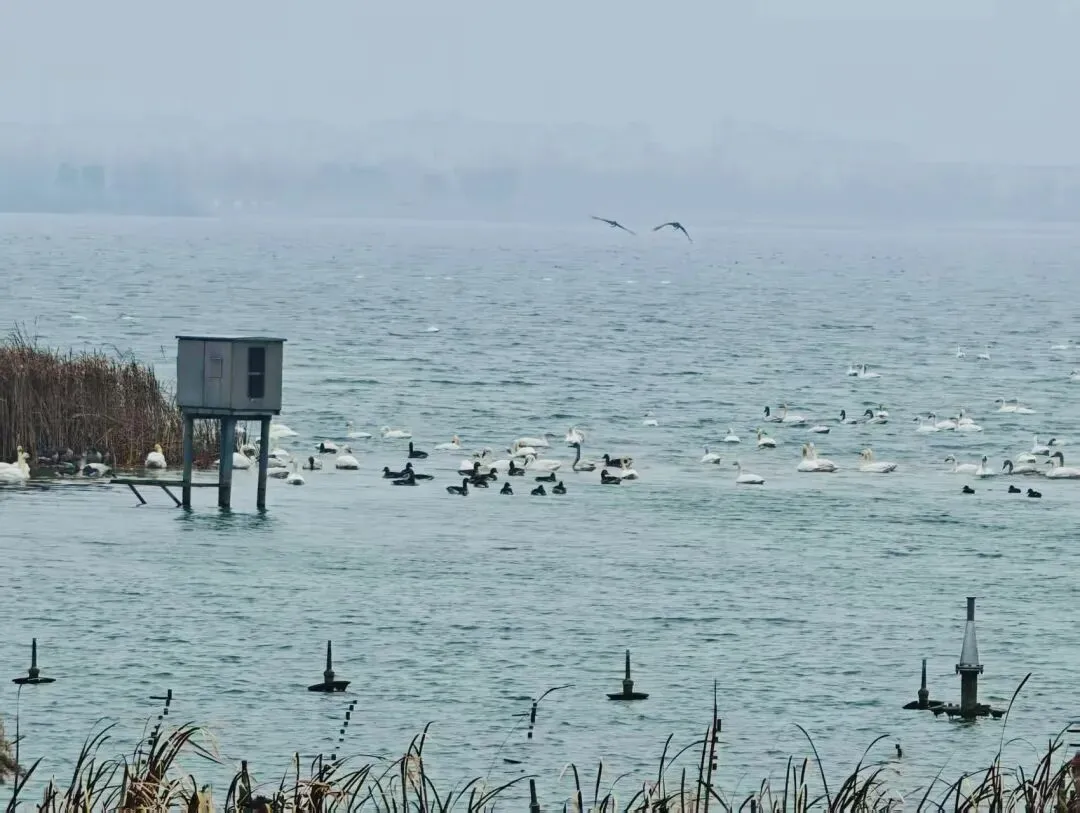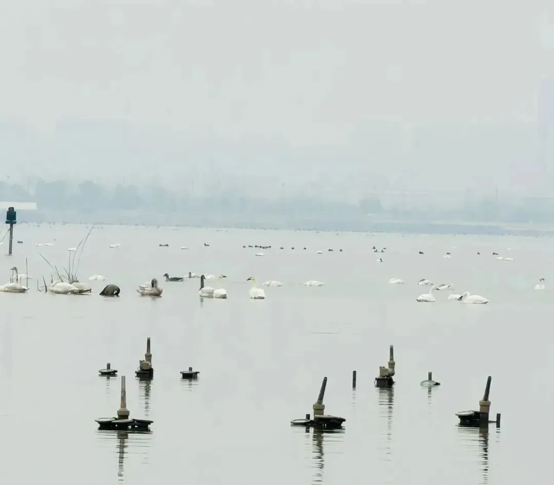 这几天,明湖火起来,网上很多天鹅的视频。从西伯利亚南下的候鸟,在这里落脚,明湖里有大天鹅、小天鹅、鸿雁、豆雁、绿头鸭、斑嘴鸭、赤麻鸭等,人们趁这个时机去观鸟