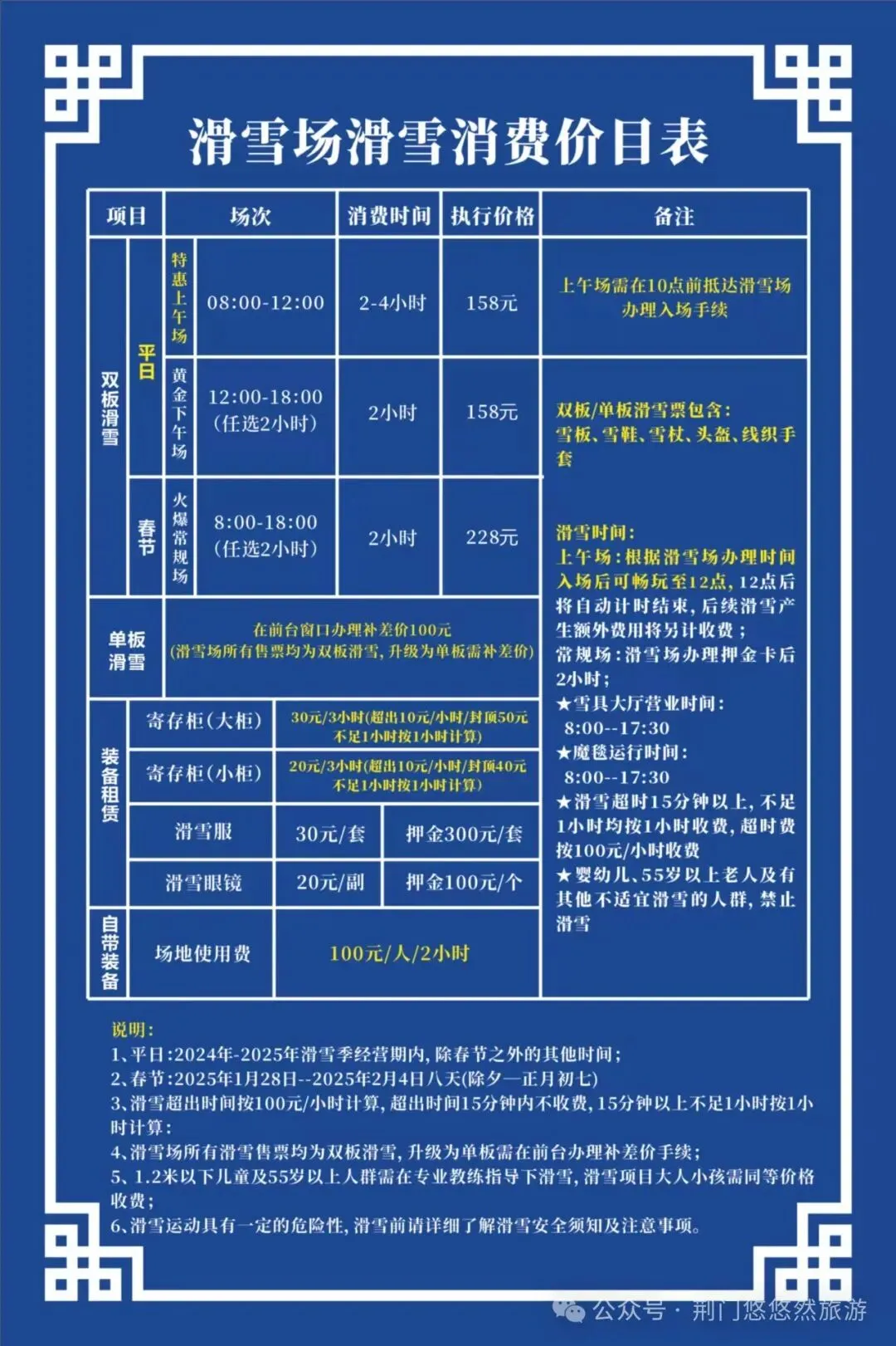 【悠悠然旅游】2月1、5、7、8日宜昌百里荒滑雪一日游(费用:218元,含滑雪5件套)