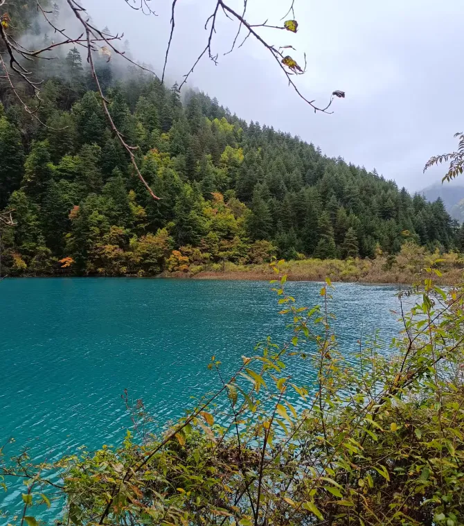 那里真是应了腾格尔的歌词:“神奇的九寨,人间的天堂”,碧波荡漾的水,像绿宝石一样晶莹剔透,看山山有色,看水水似蓝宝石。