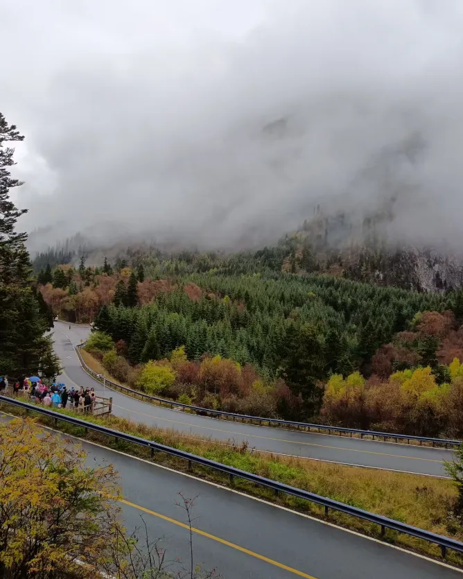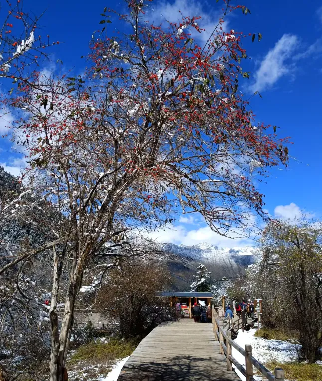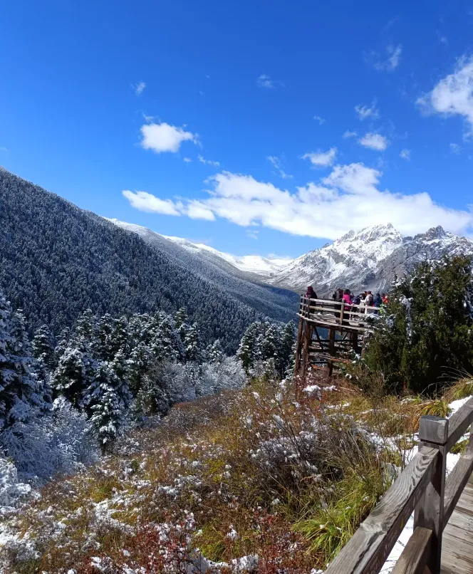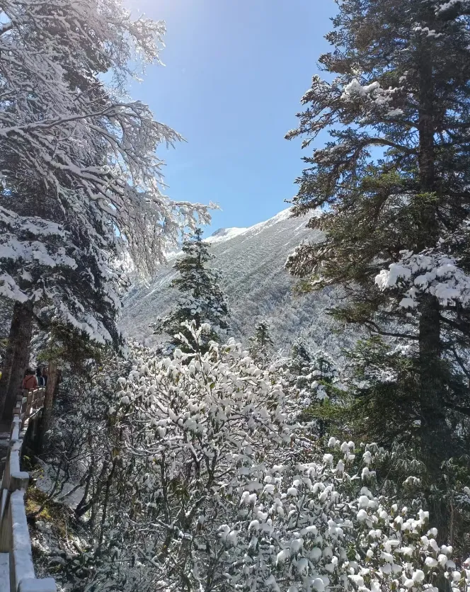 接下来的一天,我们又坐观光揽车上了黄龙,那里海拨几干米,高耸入云,上面大雪覆盖了整个山林,好在观光的人。