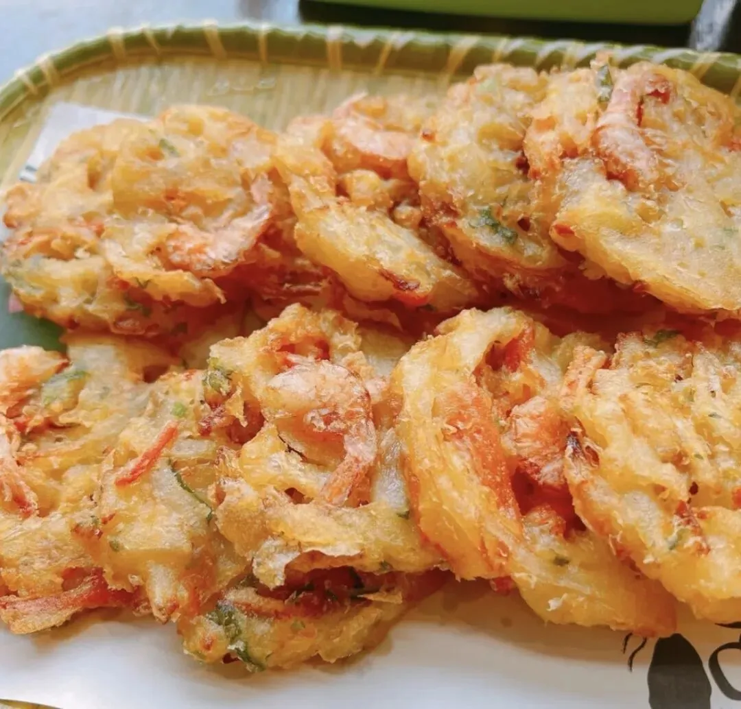 虾米套饼,是浙江省嘉兴市代管的平湖市传统小吃精品,以面粉为主料搭配虾米制成核心馅料,经包馅、烘烤等工序形成套叠结构的特色面食。其制作需将包有猪板油丁与虾米馅料的大小两种圆饼分别烤制后组合,成品呈现出香脆酥松、鲜香四溢的独特风味。