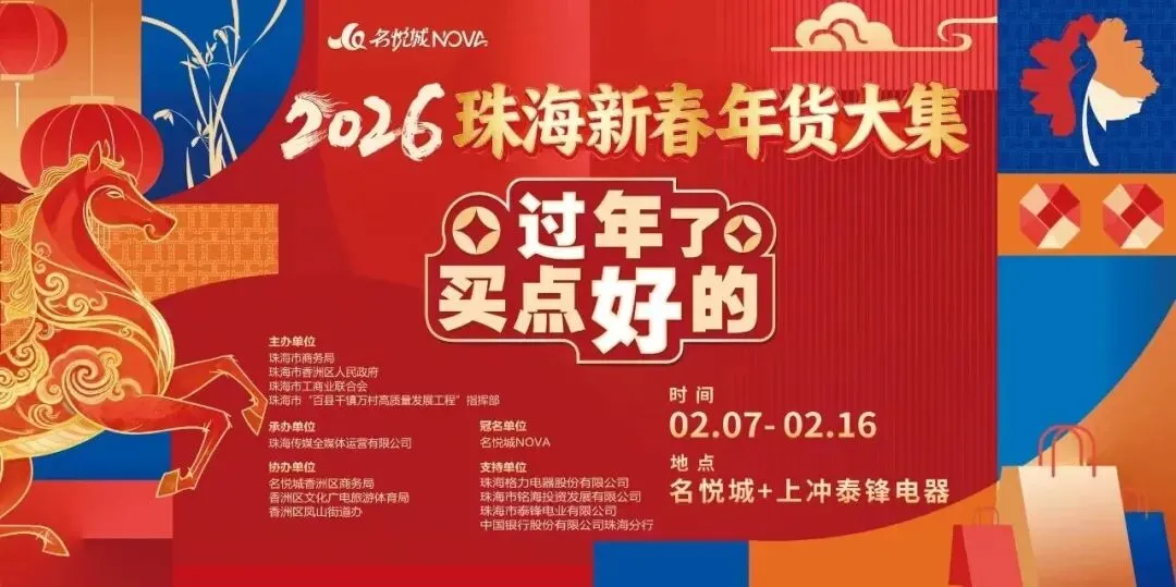 广货行天下,优品进万家。新春将至,珠海市将于2月7日至16日举办2026珠海新春年货大集,努力做到零售商品批发价格,源头直供珠海优品、珠海好货,既有传统民俗活动,也有时尚新潮NPC互动。“过年了,买点好的”,欢迎广大市民游客打卡体验,更欢迎港澳同胞到珠海买年货、过大年。
