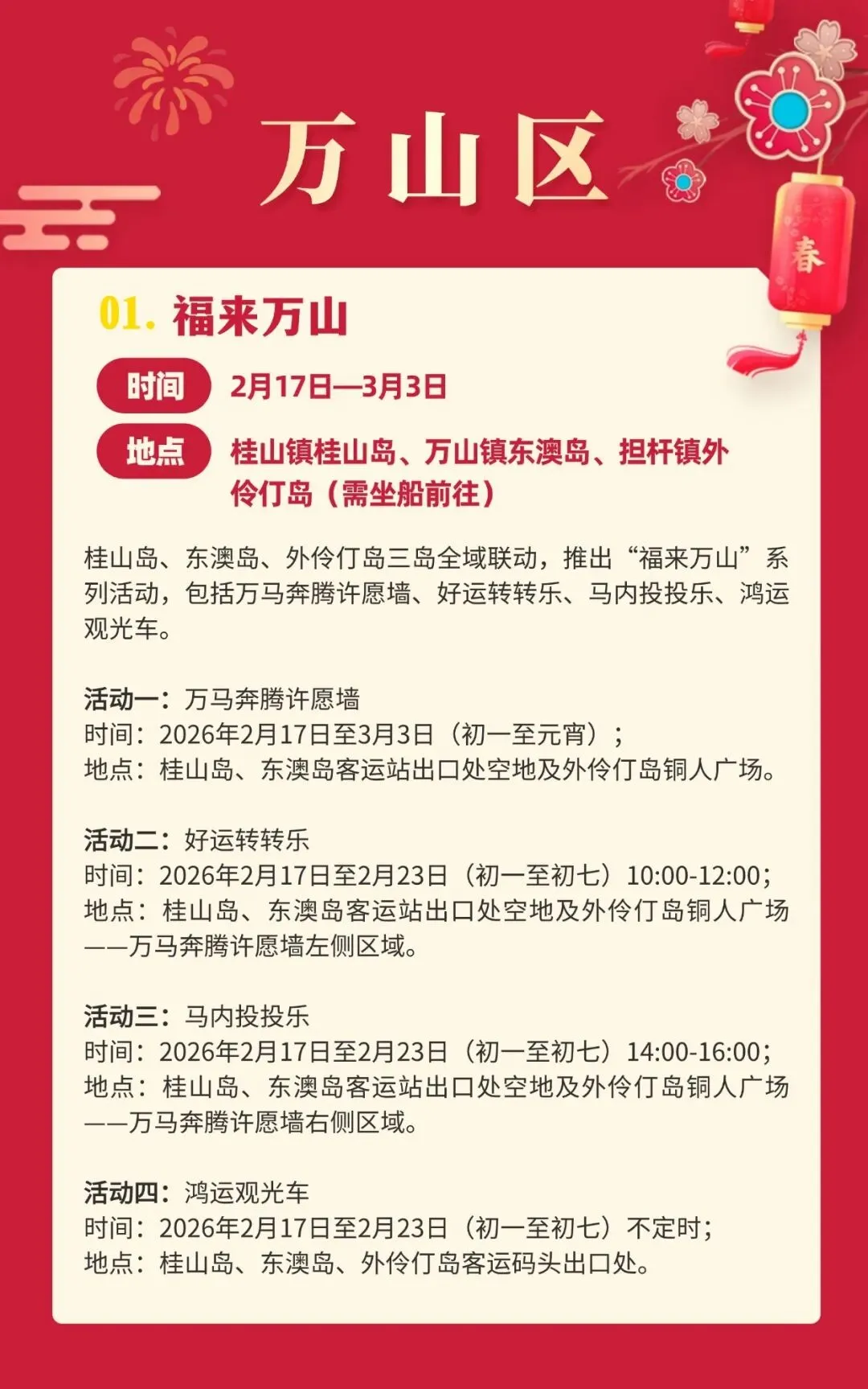 万山区依托海岛资源,联动桂山岛、东澳岛、外伶仃岛,推出“福来万山”系列活动,让市民朋友在海岛过年更具趣味。