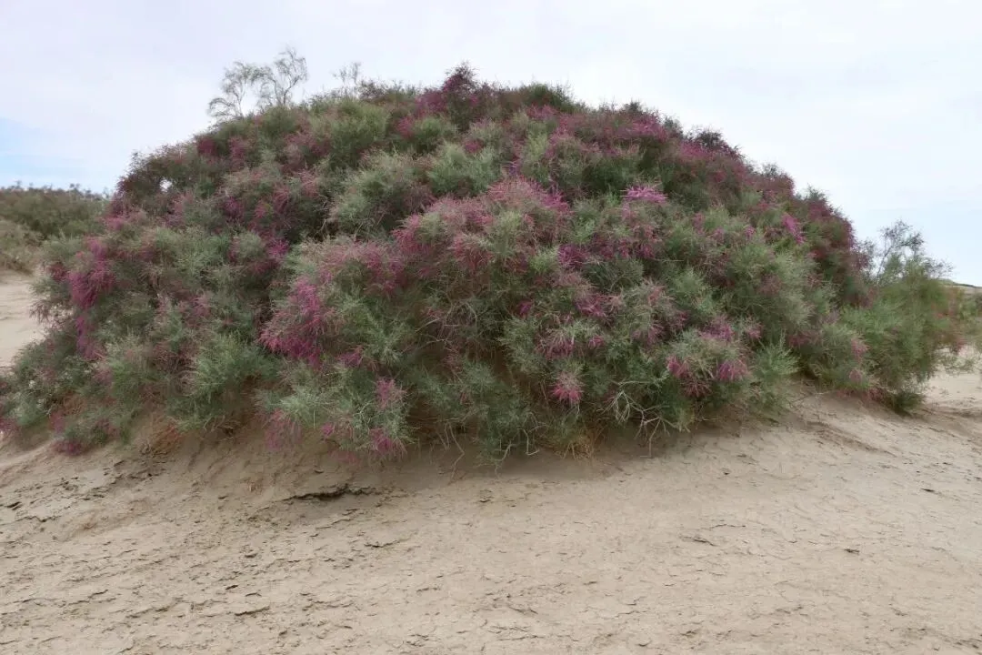 在塔克拉玛干沙丘里面有着成片的红棕色灌木,那就是沙生柽柳(也叫沙生红柳)——它被称为“沙漠岛屿”,因为连极端干旱的沙漠,都能被它改造成小型生命绿洲。