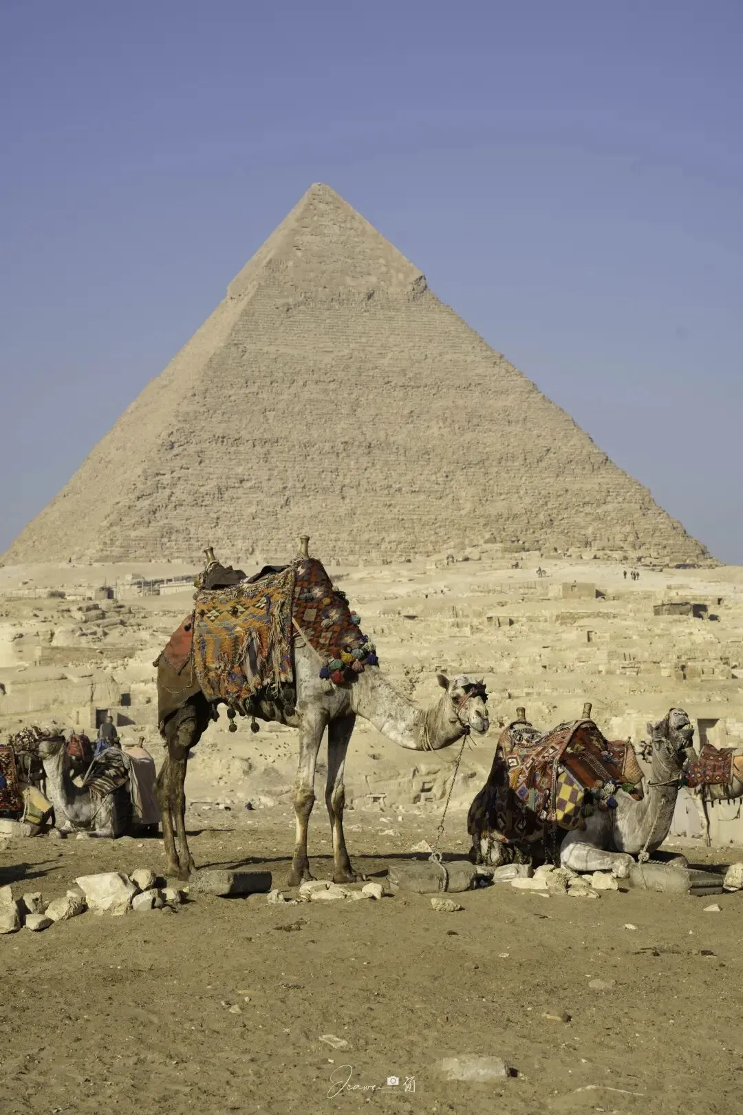 2. 步行前往大金字塔,顺路逛哈夫拉金字塔,这里是骆驼集散地,别被忽悠,在金字塔脚下静静发呆,感受4500年的历史风沙超惬意。