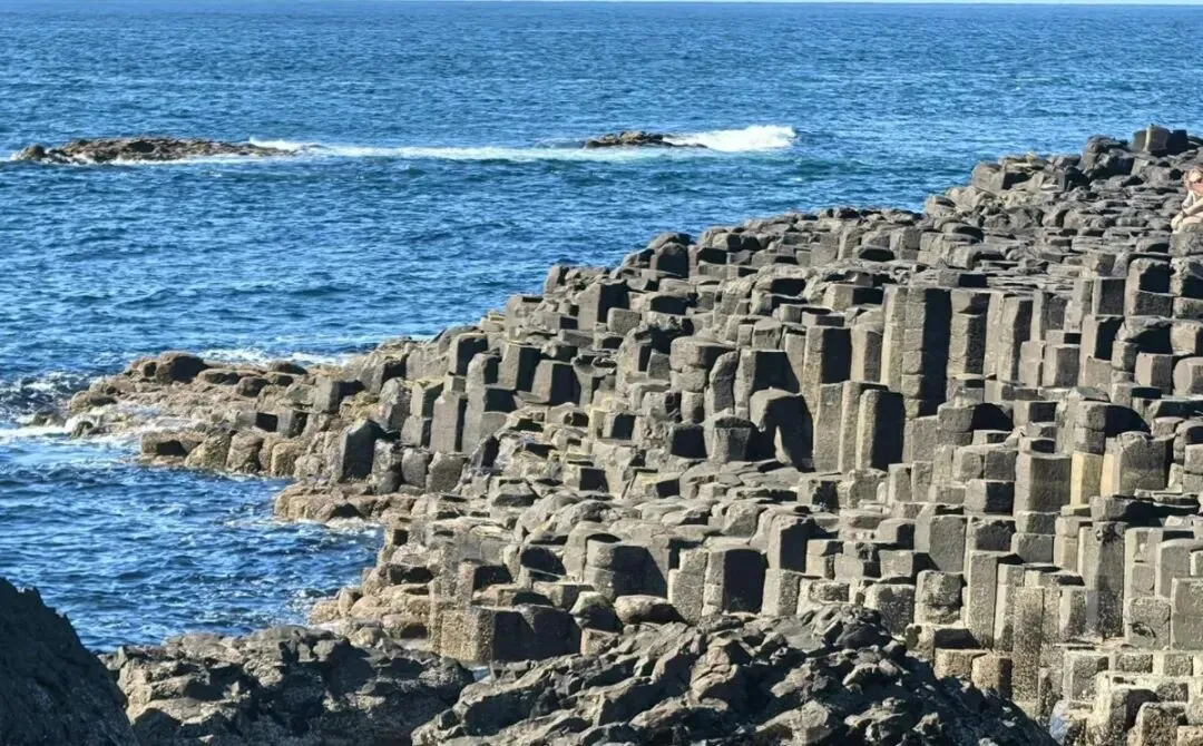 火山喷发造就的地质奇迹,六边形石柱在浪花中伫立,还藏着巨人决斗的古老传说。