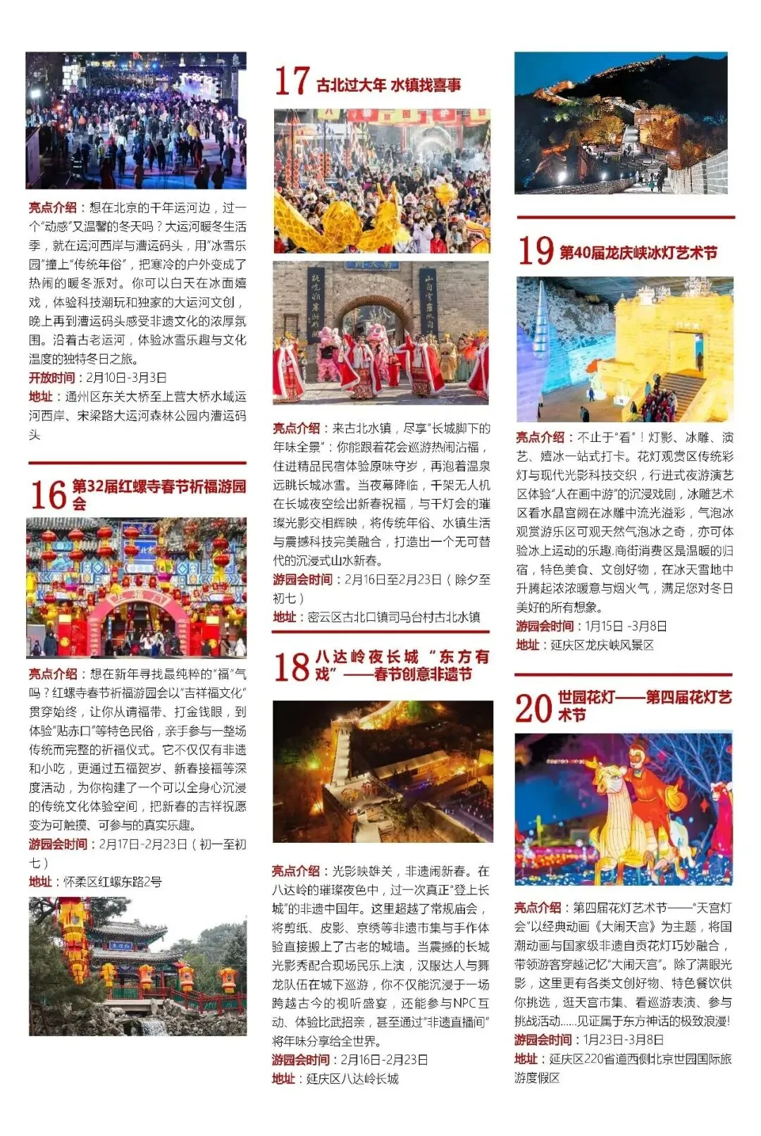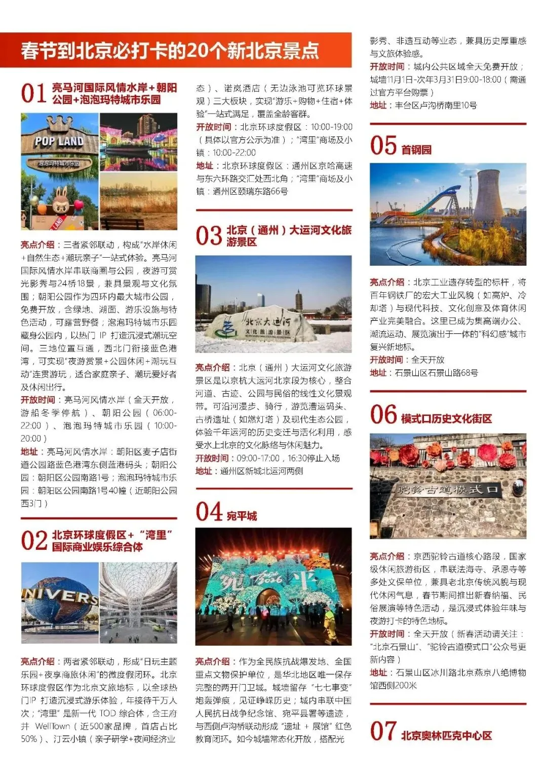 北京市文化和旅游局精心打造——马年春节来京旅游必打卡10大榜单指南,带你畅游北京过大年!上篇包括:🏮春节到北京必打卡的20个新北京景点🏮春节必逛的20个庙会游园会🏮春节必体验的20个非遗项目🏮春节必看的20场文艺演出