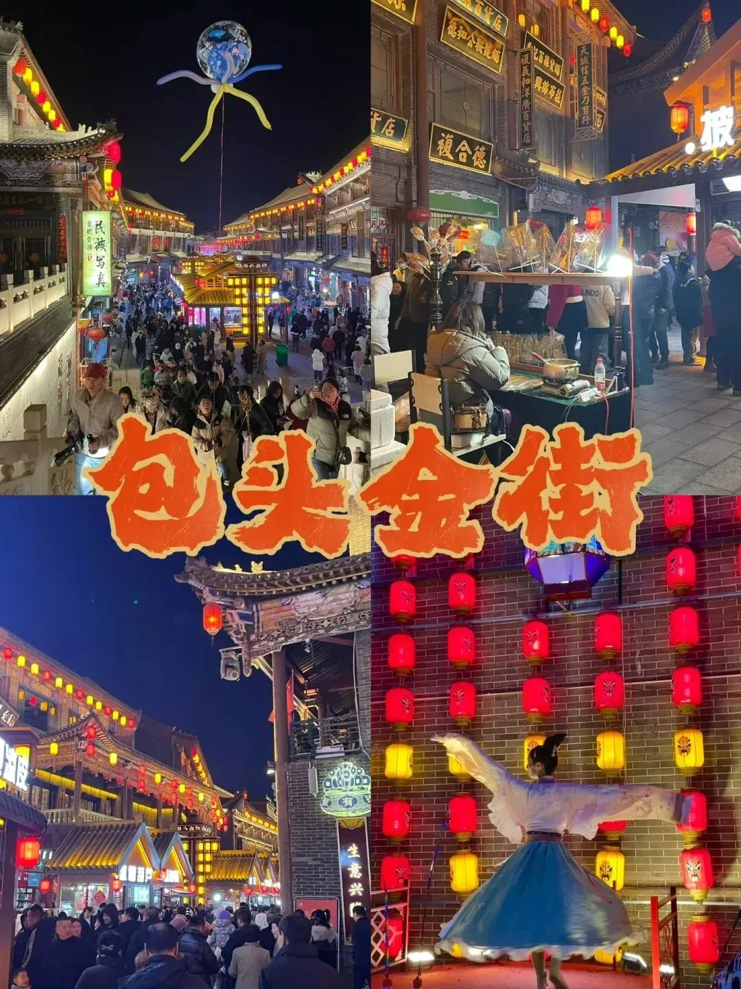 是百年前晋商乔家在包头的商脉宝地。这里整体为蒙晋建筑风格,老牌林立,有古玩、戏园、美食等,还有剪纸、糖画等非遗项目展示,夜晚灯火辉煌,热闹非凡。