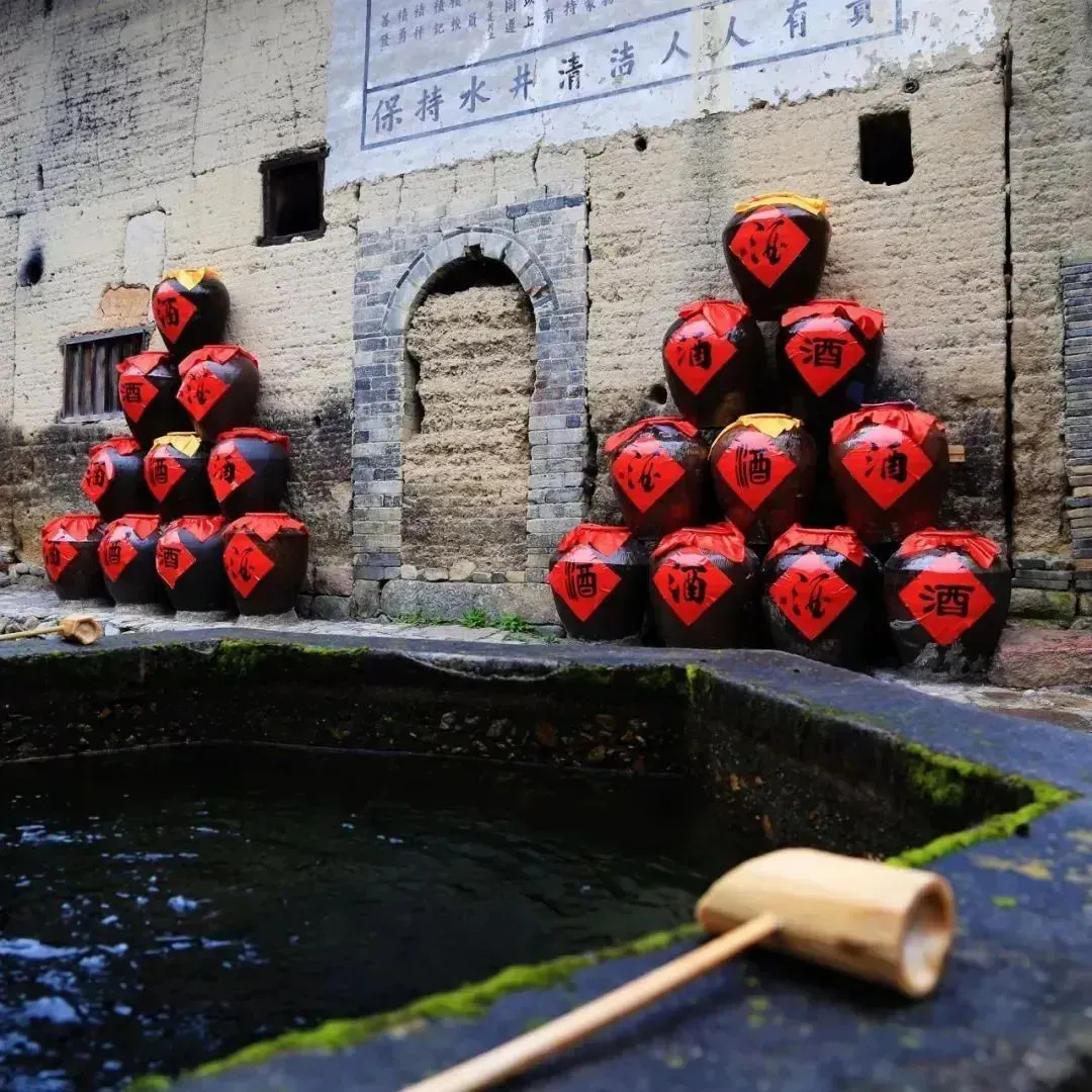 乘车【闽派黄酒第一村——北乾村】黄酒特色小镇”屏南县代溪镇北墘村,家家酿酒人,户户有酒窖,北墘村位于屏南县代溪镇东南部,是以黄酒文化命名的国家3A级景区,被评为全国文明示范村,村里从事老酒酿造农户占全村农户99%。品一口北墘老酒,入口不干、醇香浓郁、鲜甜爽口,三五碗后,便如登仙境,所有迷离般的快乐都会从这甜香的酒中迸发,真是让人沉醉不已。
