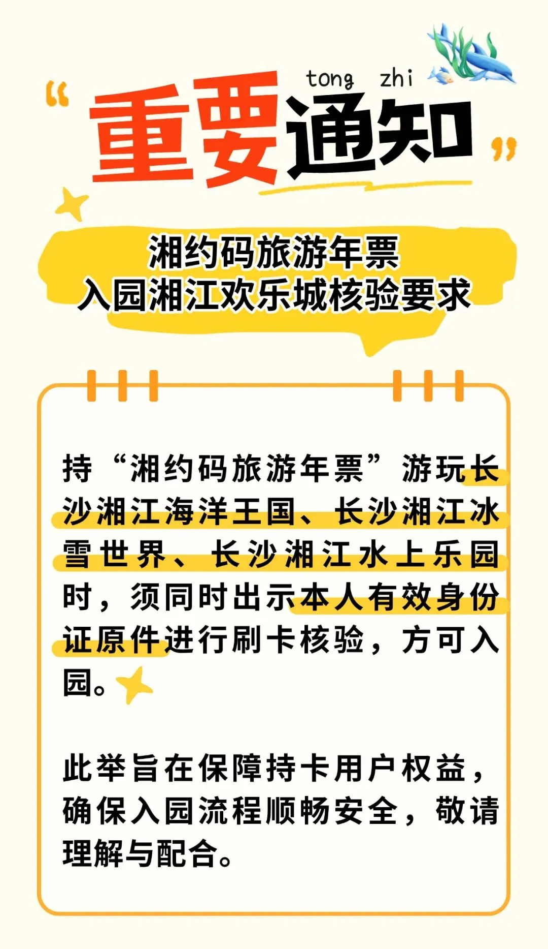 感谢您选择并持“湘约码旅游年票”探索湖湘精彩。为保障您能顺利、便捷地畅享湘江欢乐城旗下园区的独特魅力,现就使用年票入园的具体须知公告如下: