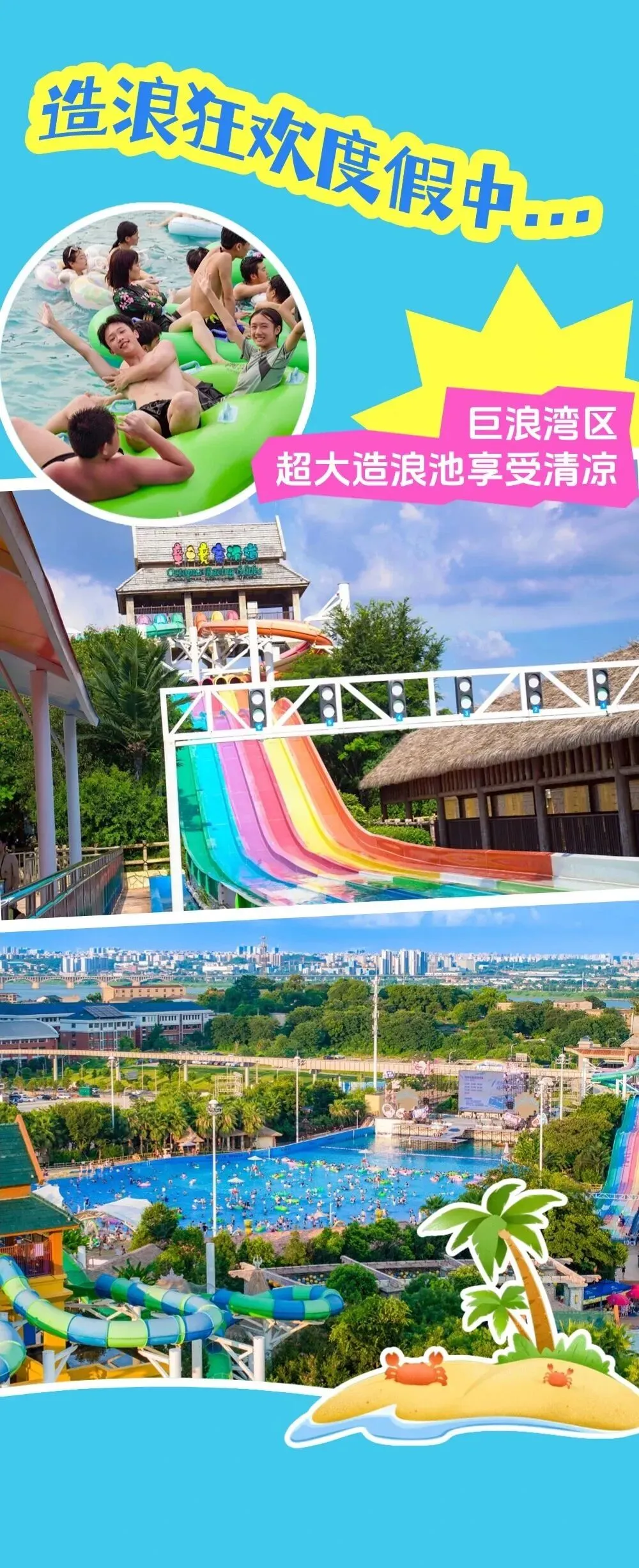 ✅阖家欢乐:广阔的造浪池能模拟海上浪潮,全家人都能在水中随波起舞;蜿蜒的漂流河则适合悠闲地躺着,看天光云影。