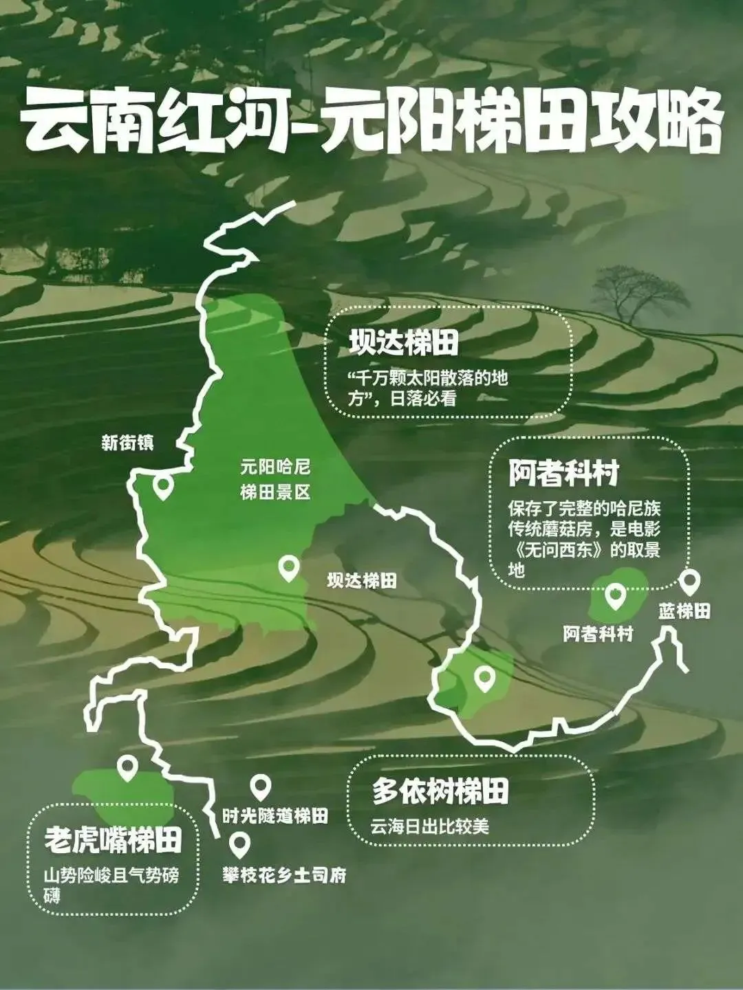 D1:抵达元阳 →. 坝达景区(看日落).→ 住多依树