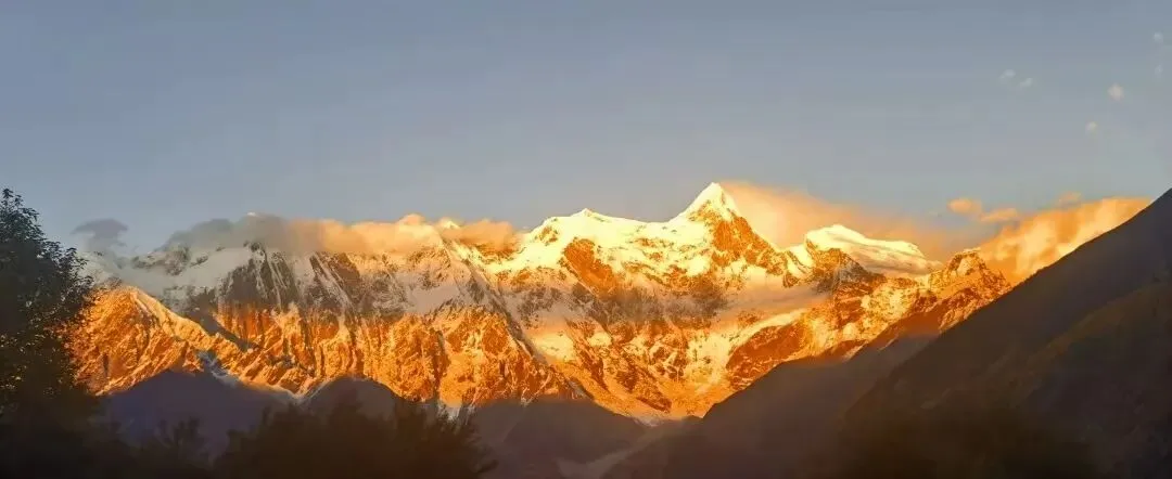 日照金山:计算好日落时间,在夕阳将顶峰染成金红色的瞬间按下快门,这是所有摄影师梦寐以求的画面。