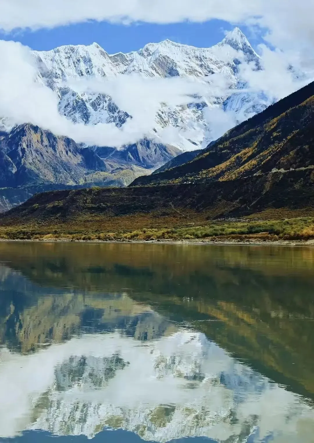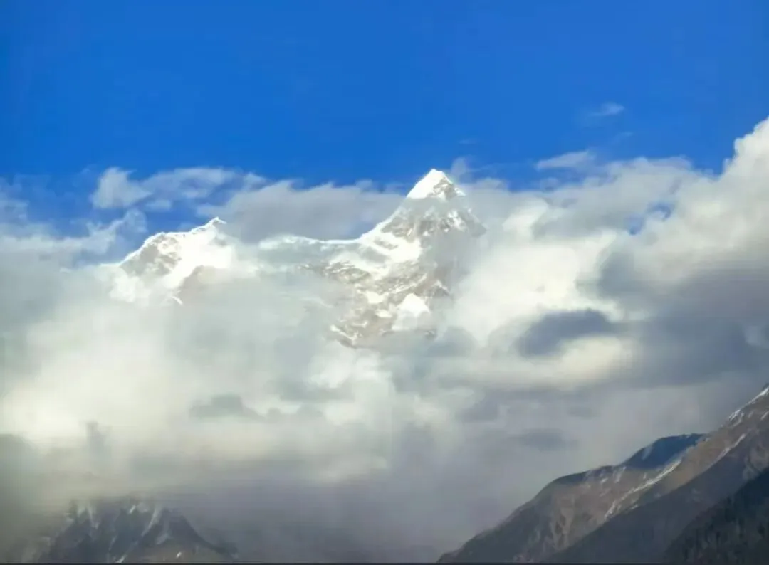 极致风光:空气澄净,能见度达到年度顶峰,南迦巴瓦峰“羞女峰”揭开面纱的概率大大增加!雪山冰川在蓝天下无比清晰锐利。