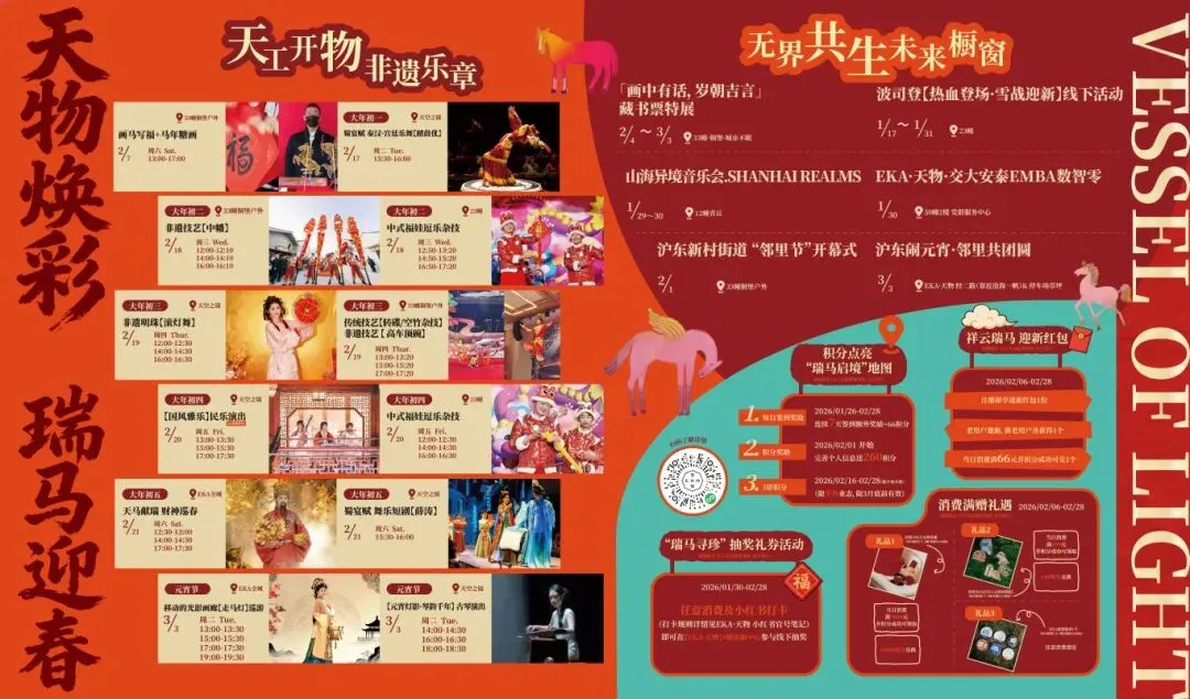 1月30日至3月3日,瑞虹新天地以“新有奇骥·年年在一起”为主题,围绕“新有奇骥,不在一跃,而在长行”的核心理念,推出一系列融合传统与现代的新春活动。