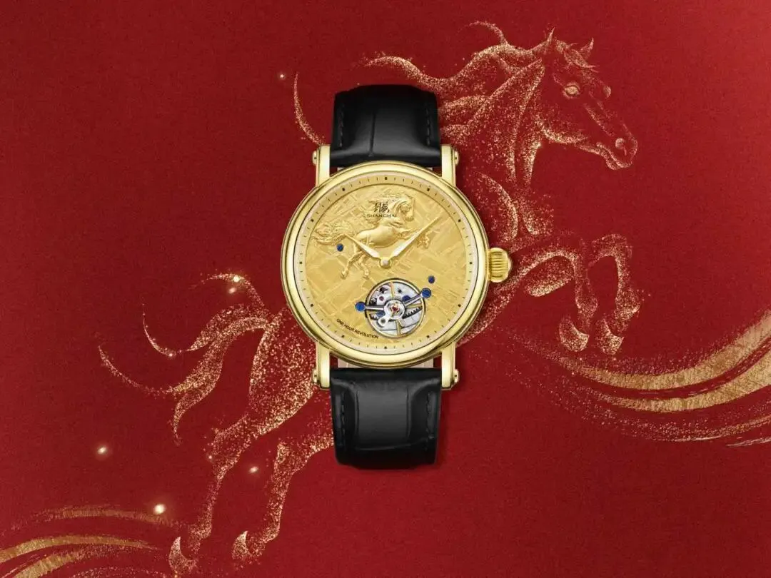 每款腕表均限量发行300枚,以盘面一小时旋转一圈的标志性特征承载一份新年祝福:愿在奋进的前路,总有鸿运相随,财源如马蹄声般步步高升,滚滚而来。
