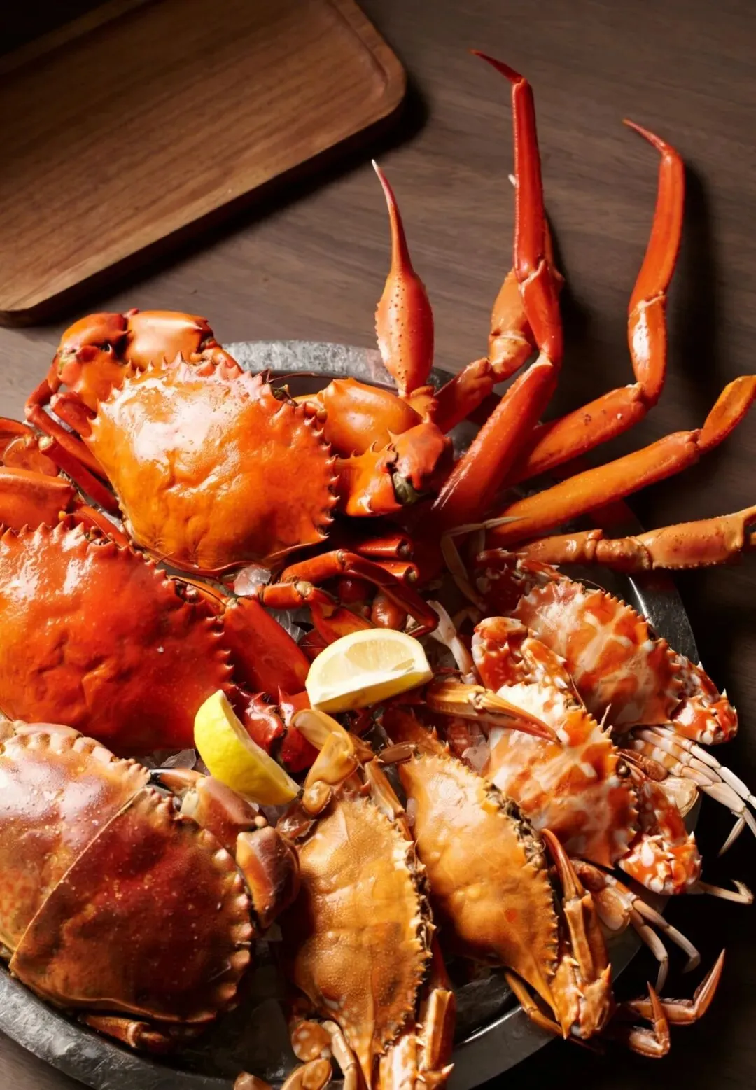 海鲜吧包括冷俄罗斯蟹脚、三点蟹、青蟹、蓝蟹、冰镇龙 虾钳;日式寿司区提供赤身吞拿鱼、油甘鱼,更有即制手卷及寿司。热荤则有即炸广岛生蚝、即 炸软壳蟹刈包、酿蟹盖、蟹肉浓汤、即煮面食区内的虾汤等。