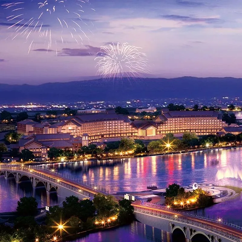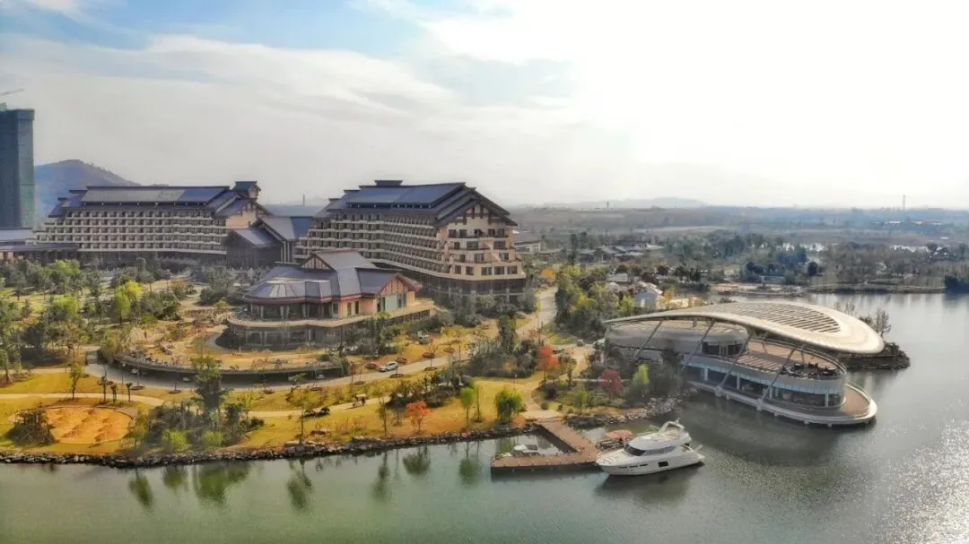 (五星推荐):景区核心湖畔的高端酒店,53㎡起豪华客房,落地玻璃窗直面湖景,还有亲子主题房、临湖温泉别墅,配套室内泳池、健身房、KTV 等,一站式吃住玩。