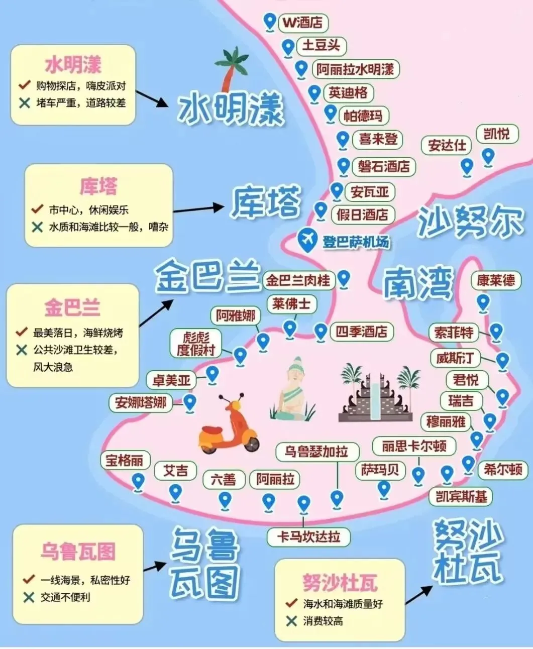 其中库塔、情人崖、水皇宫、佩达尼钻石沙滩等景点值得一看!
