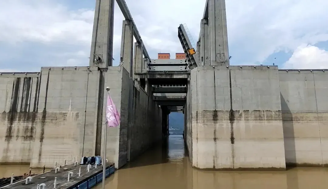 终于,慢慢的,升船机停了下来。闸门刚一打开,我们的船就迅速驶离了“电梯间”,重新驶向了宽阔的滚滚长江。