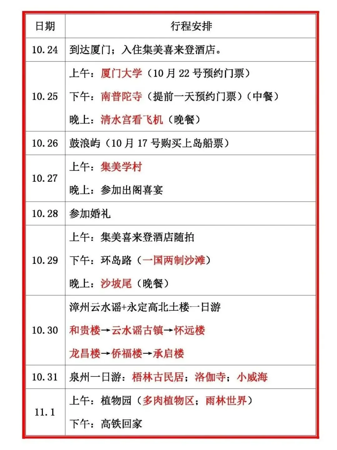 ★★★厦门之旅——行程安排★★★