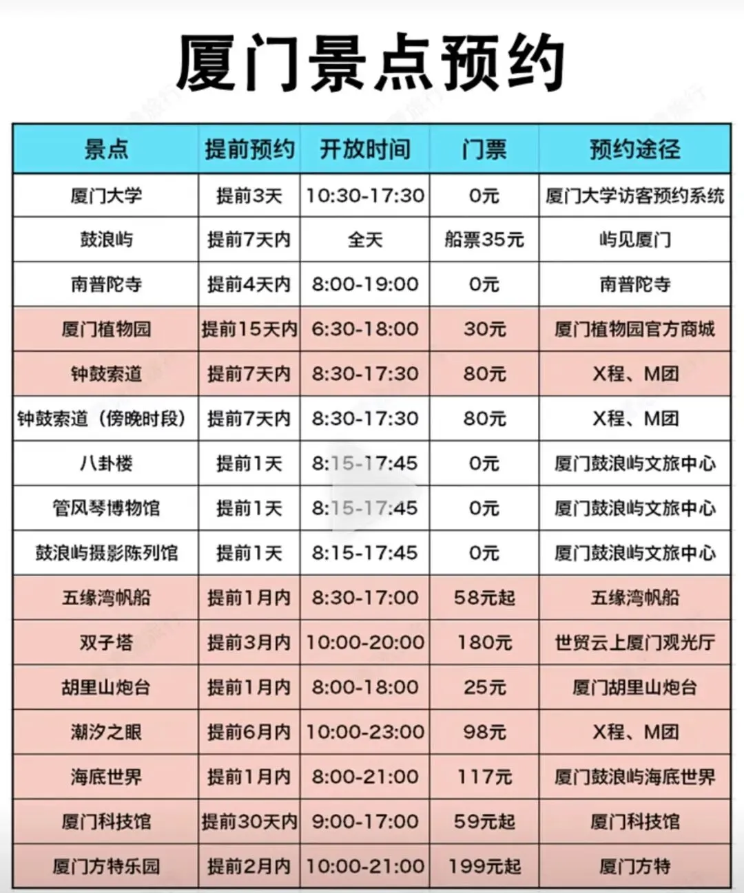 ★★★厦门景点预约途径★★★