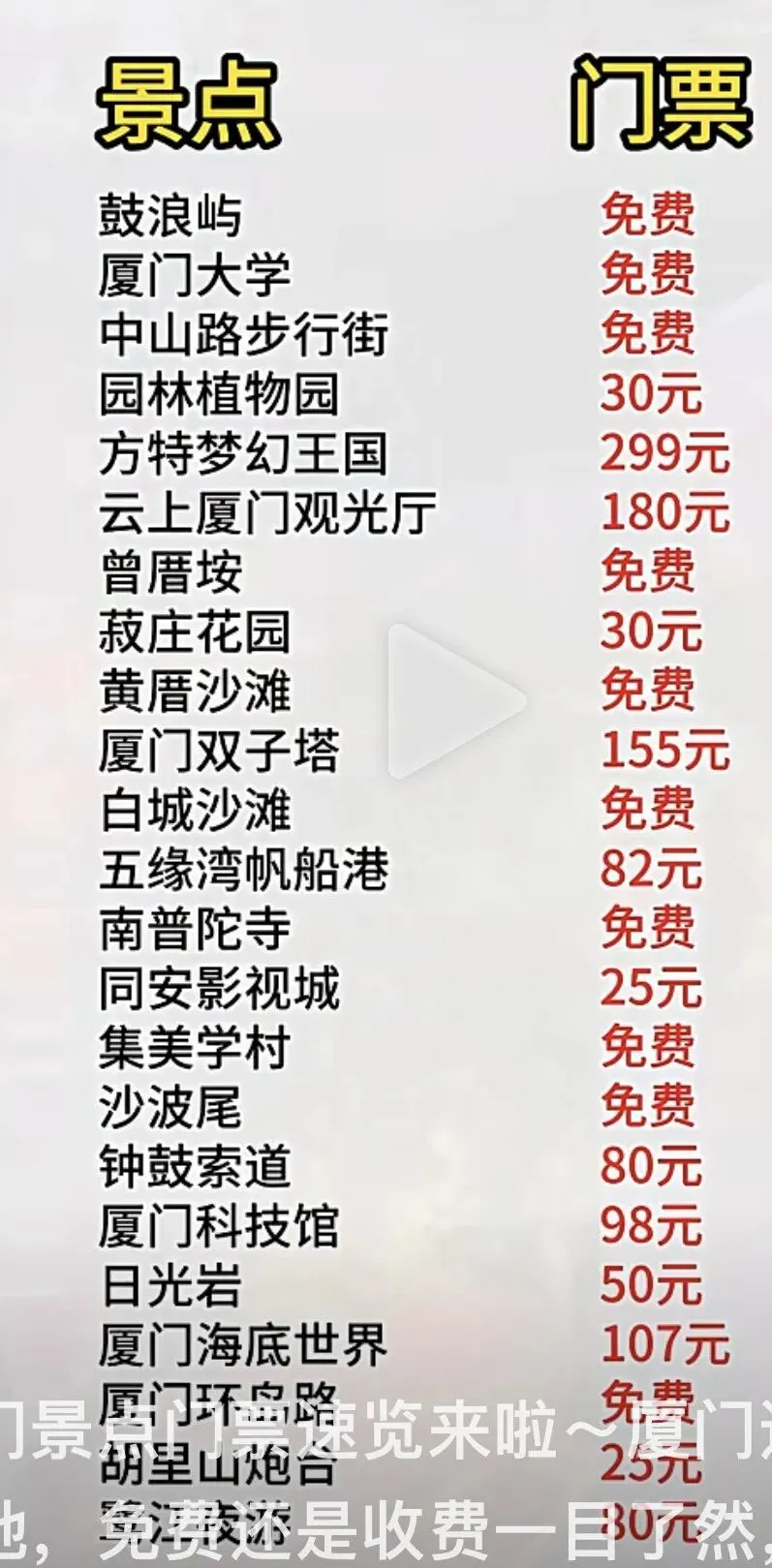 ★★★厦门之旅——景点选择★★★