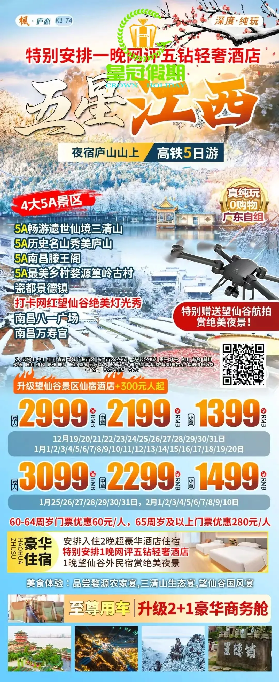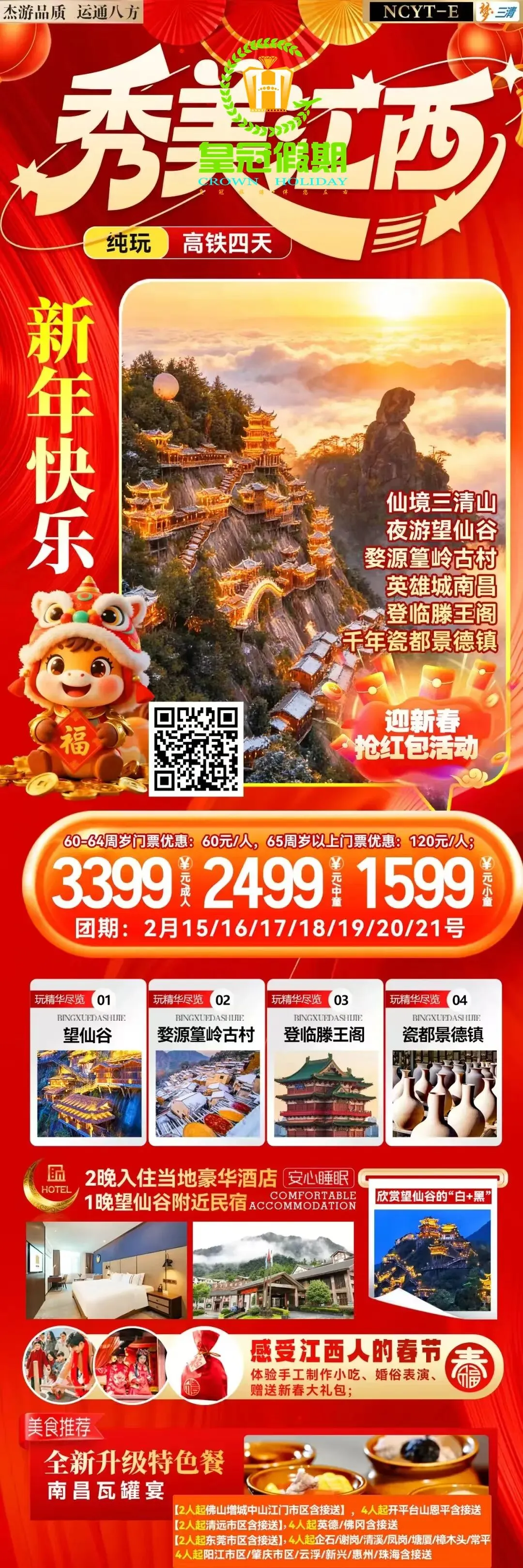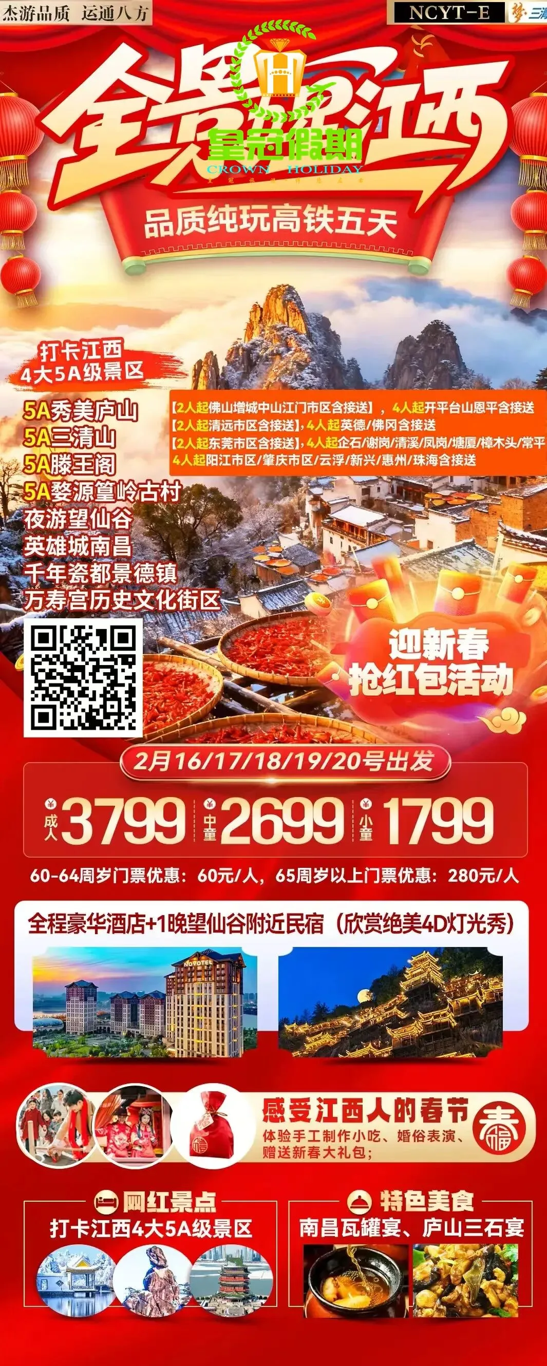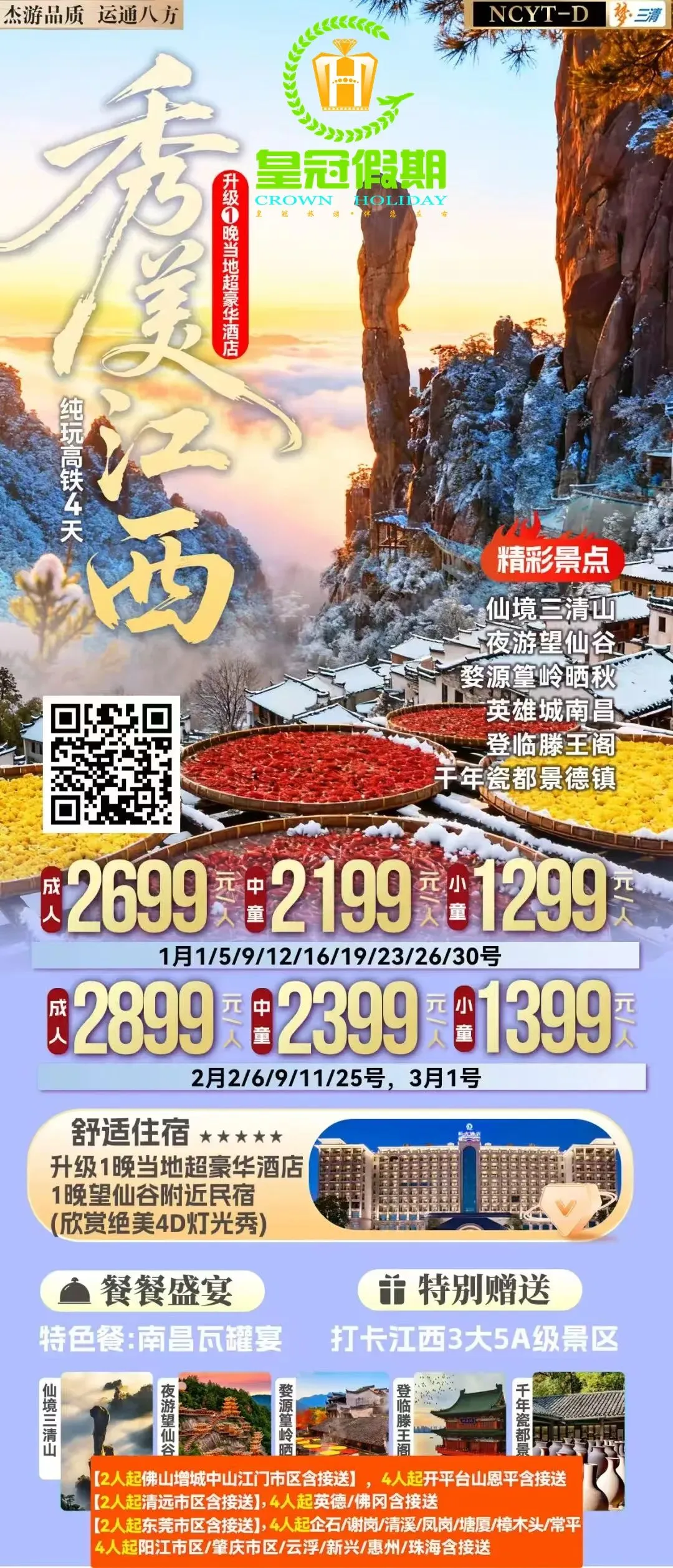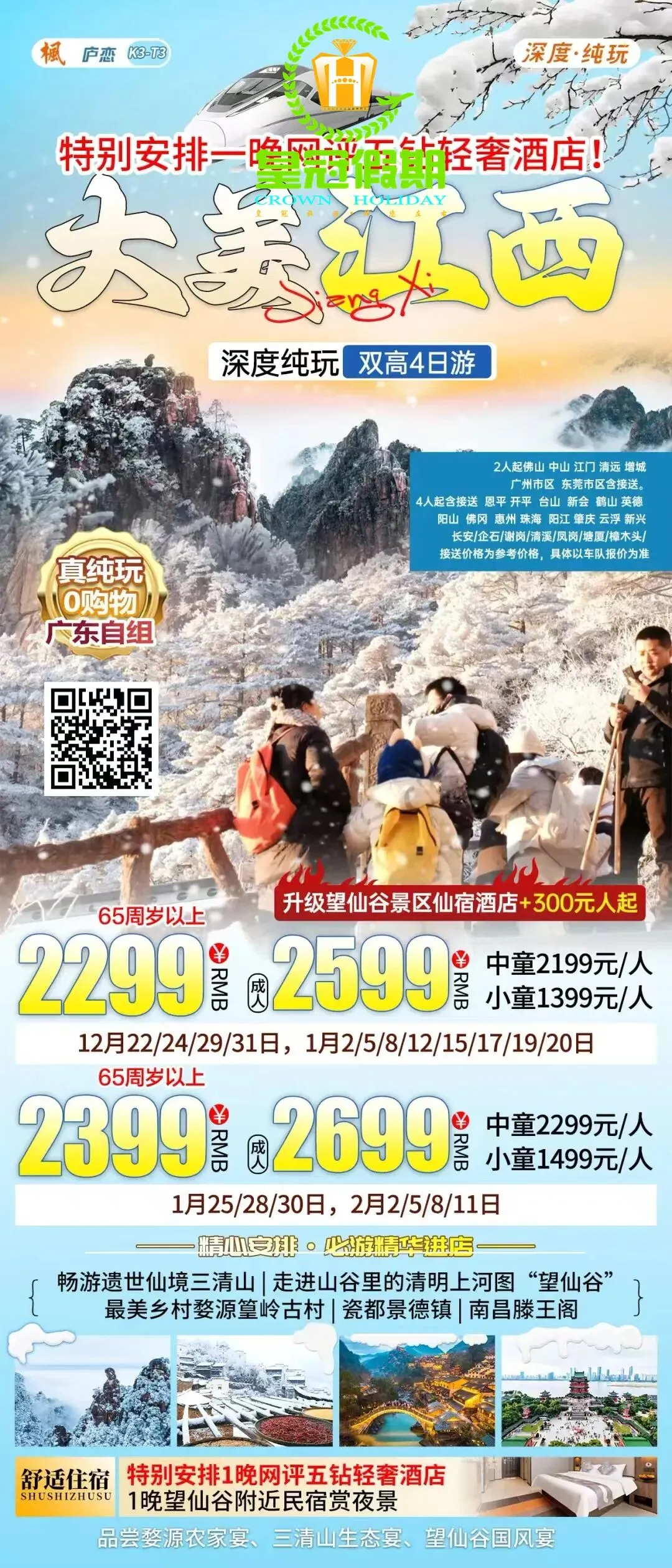 【寒假&春节】江西旅游线路~点击蓝字关注【佛山皇冠假期】