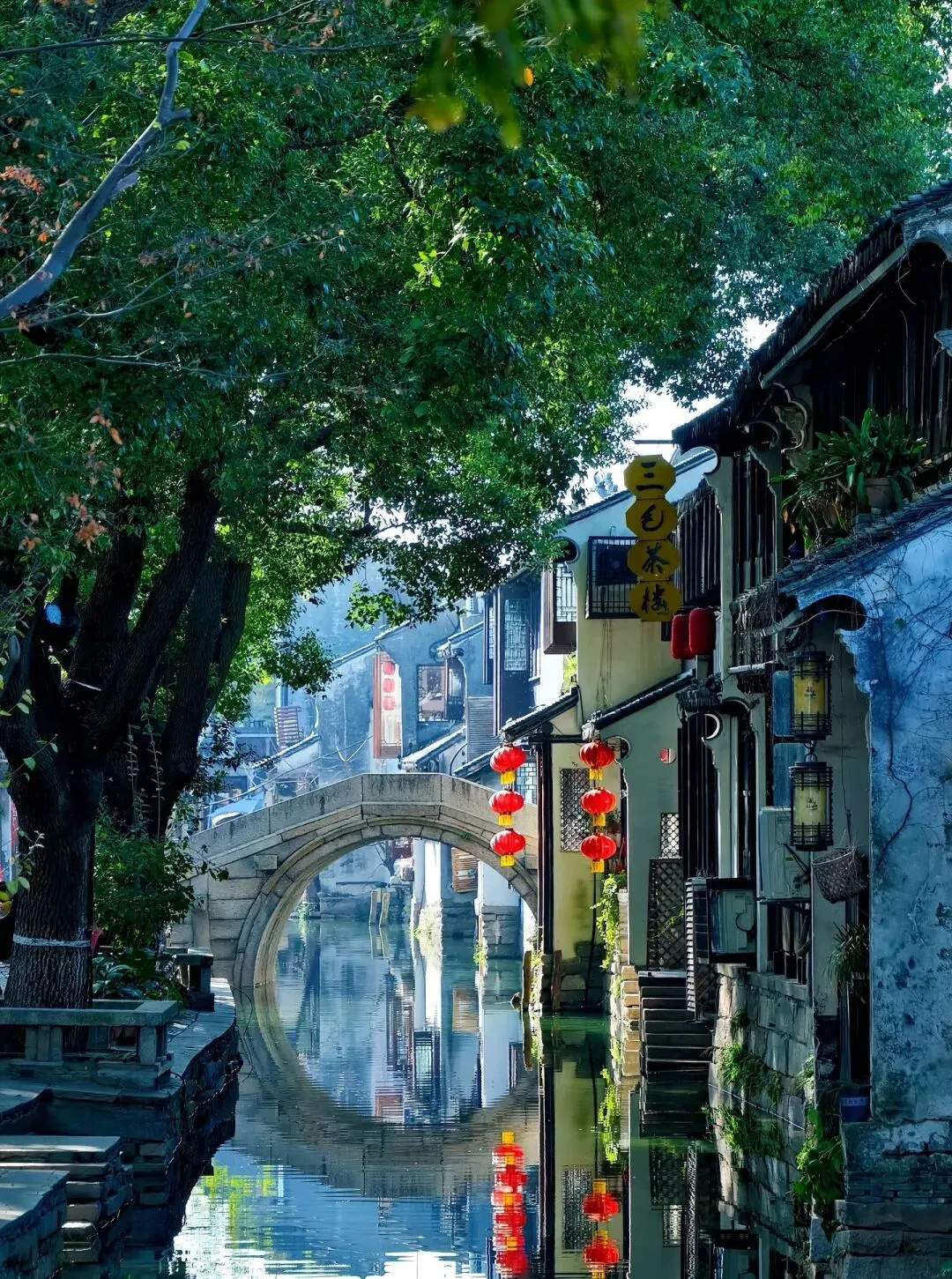 在乌镇的河边,点一壶龙井茶,看乌篷船慢悠悠地划过去...那一刻,时间好像真的慢下来了。